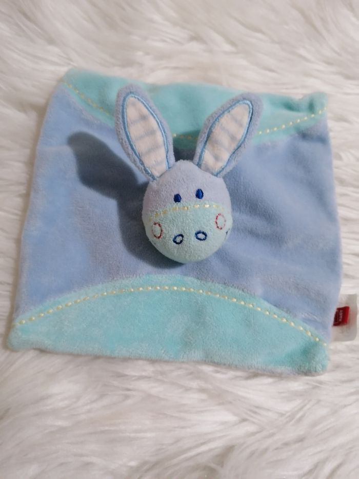 Doudou plat tête d'âne Couleur nuance de bleu Parfait état Velour rasé Polyester TeX