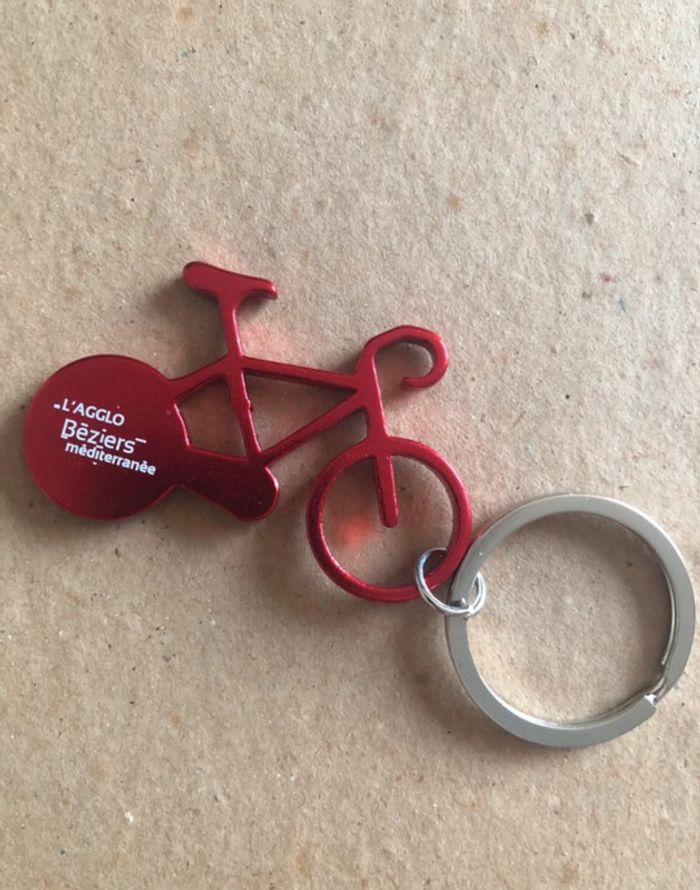 Porte clé vélo rouge acier cyclisme Tour de France agglo Béziers Méditerranée
