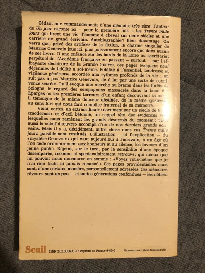 Livre Maurice Genevoix trente mille jours - photo numéro 2
