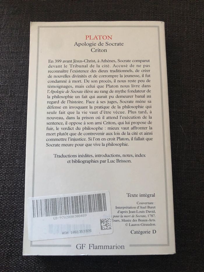 Platon apologie de Socrate criton Flammarion - photo numéro 1