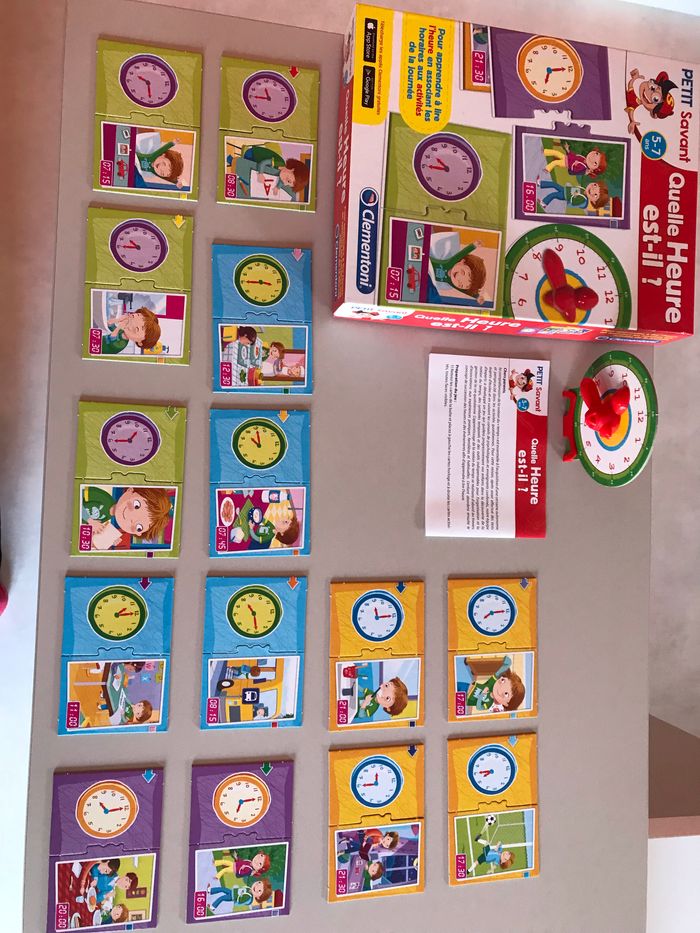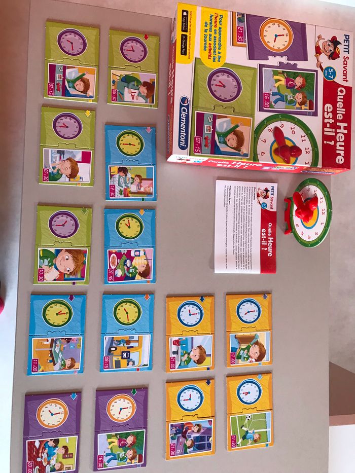 Pour apprendre l’heure et les moments de la journée. En très bon état