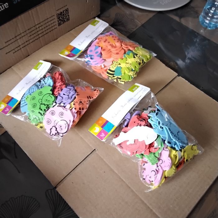 Lot de 3 paquets de stickers mousse animaux XICA 80 stickers par paquet Coccinelle, papillon, libellule Crocodile, éléphant Moutons, tigres, tortues