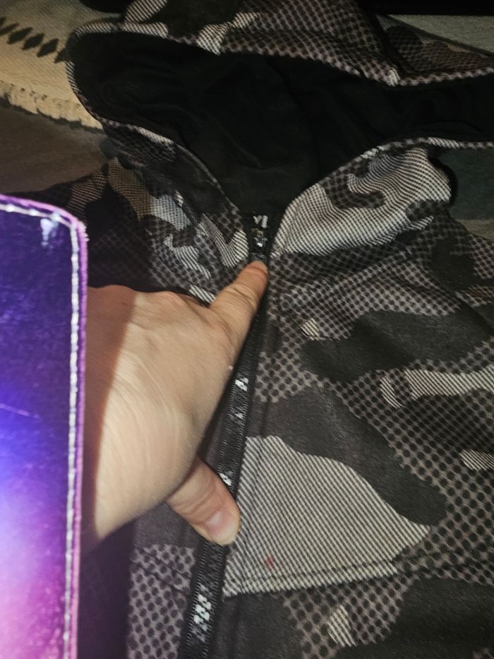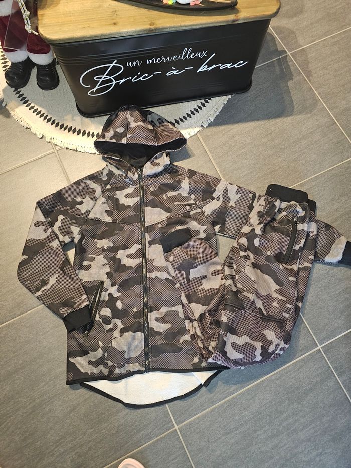 Bonjour 👋 Je vend ce: 👉jogging garcon 14 ans Noir et blanc camouflage ( une tache rouge ,bout de la fermeture qui a lacher mais n enpeche pas de ce fermer,manque cordon,un trou genoux,et fermeture dune poches casser)peu servir pour faire du sport Maison 🏠 non fumeur et sans animaux . I