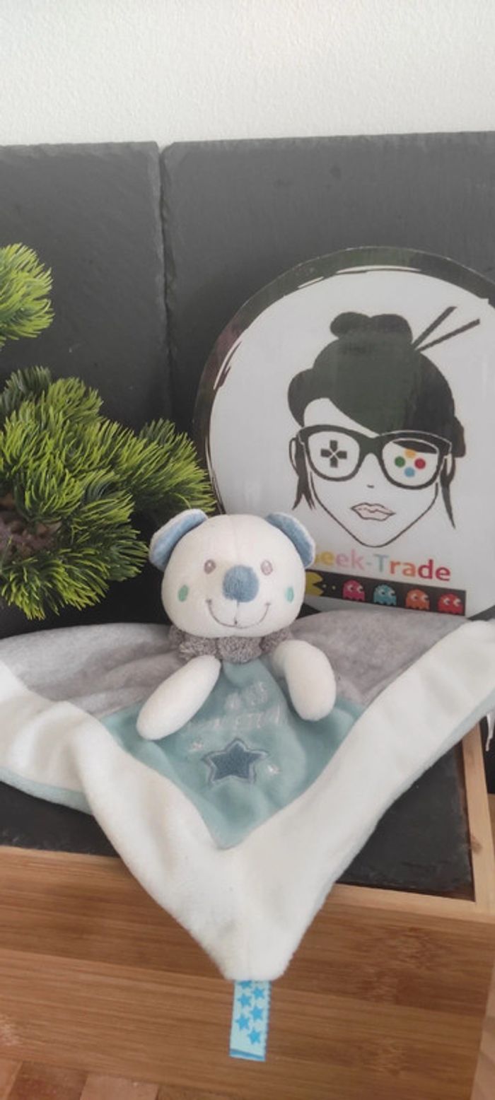 Ours nicotoy simba toys Gémo doudou bleu blanc gris Tu es mon étoile Carré Vert