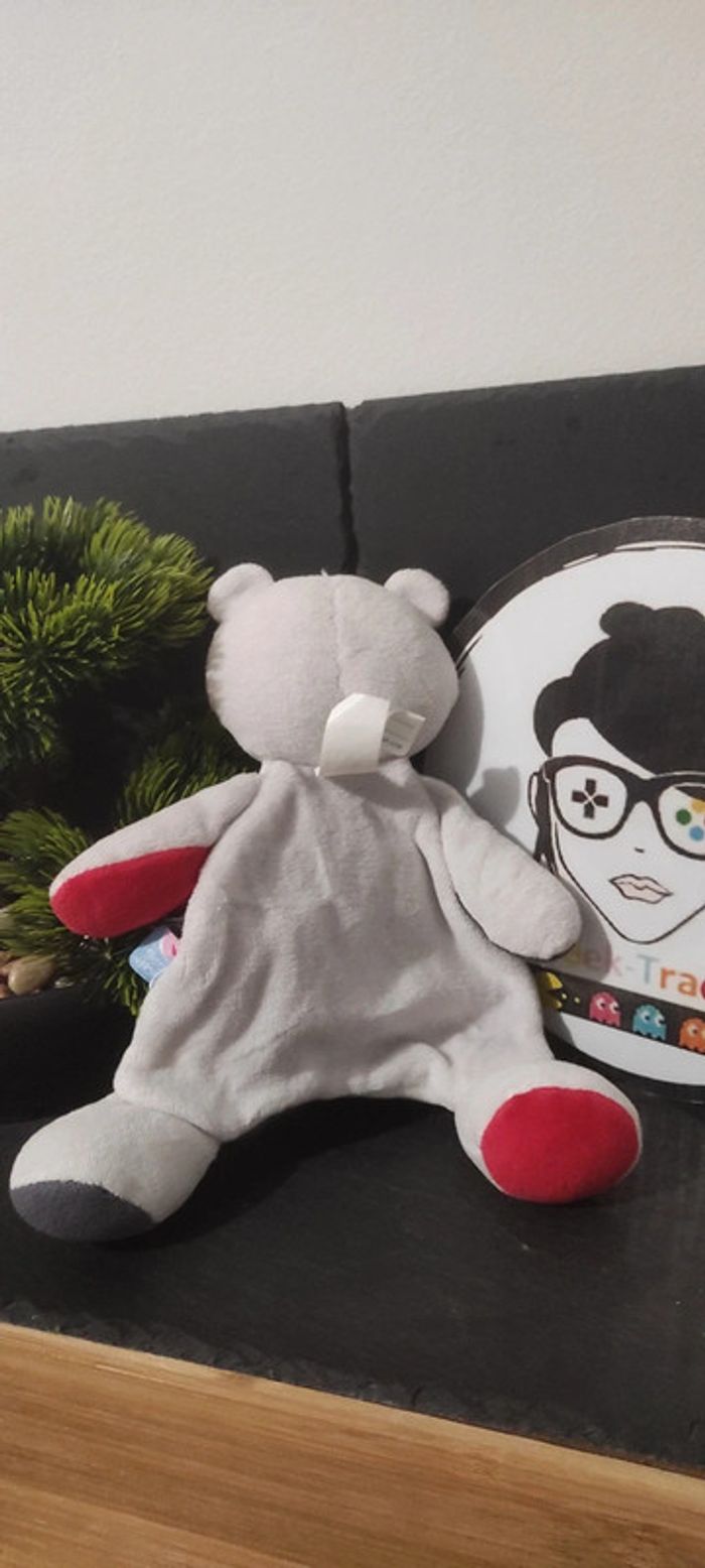 doudou ours gris mon petit ourson sucre d'orge rouge bleu Plat Rond - photo numéro 2