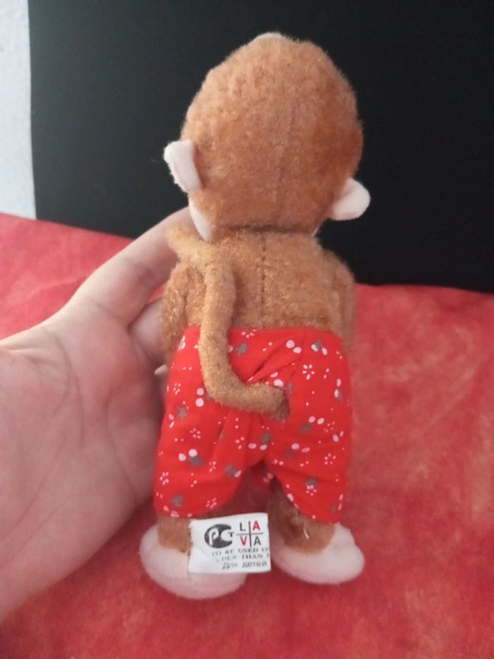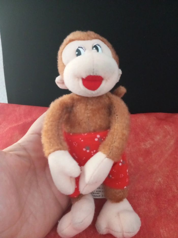 Vends ce singe marron avec short rouge En très bon état, besoin d'un petit nettoyage , vendu comme sur les photos. Dans mon dressing, il y a d'autres peluches, des Petshop, des Lego Duplo, des Playmobil, des Barbie et beaucoup de jeux et jouets vintage #nourriture06_peluche_vintage