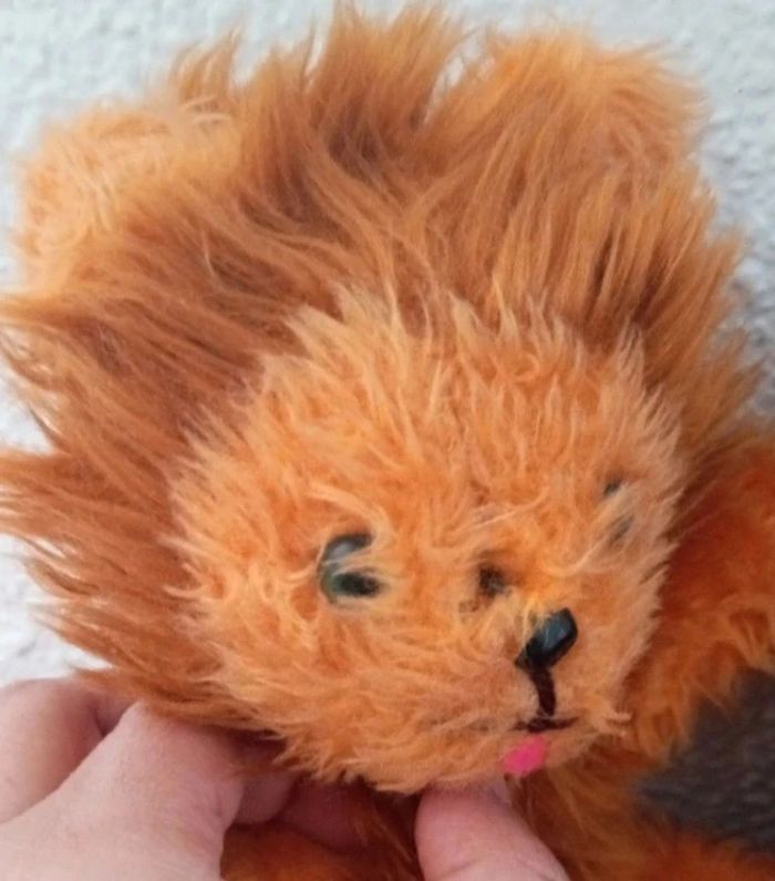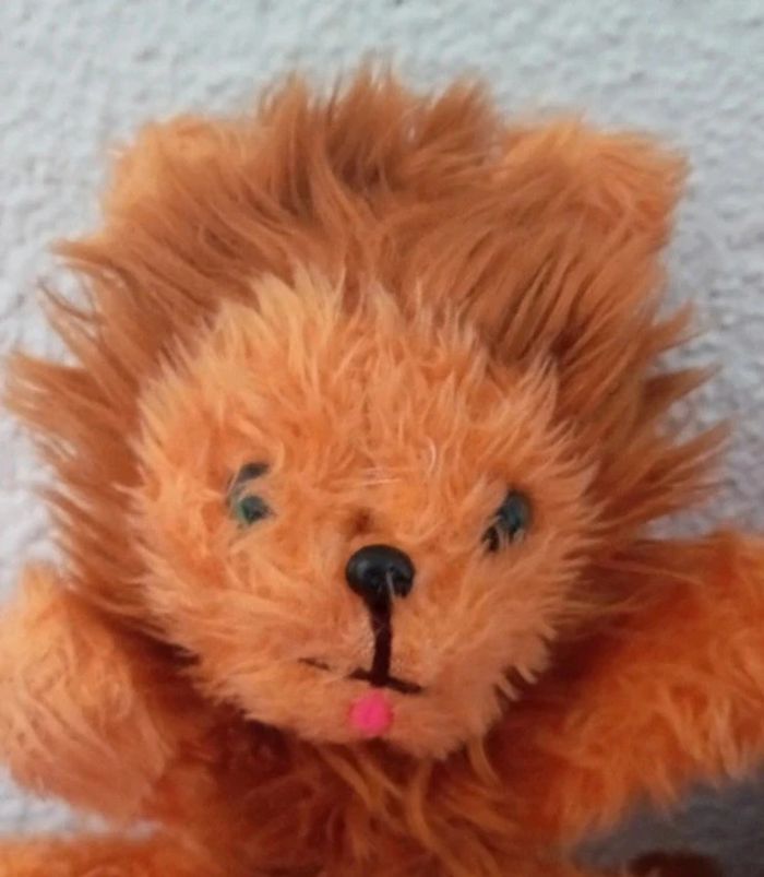 Vends cette peluche lion orange marron, yeux bleu vert, langue rose, 22 cm La peluche est en bon état mis à part nez à refixer, d'où le petit prix, vendu comme sur les différentes photos. Dans mon dressing, il y a d'autres peluches , des poupées , des Petshop, des Lego Duplo, des Playmobil, des Barbie et beaucoup de jeux et jouets vintage #nourriture06_peluche_vintage