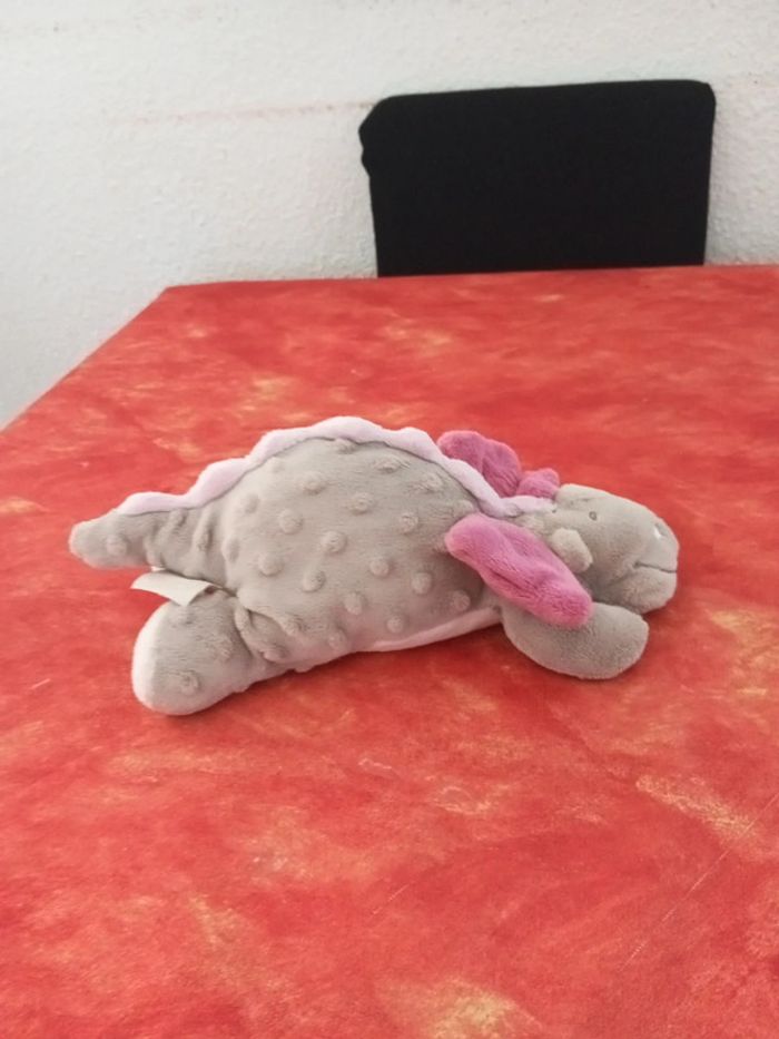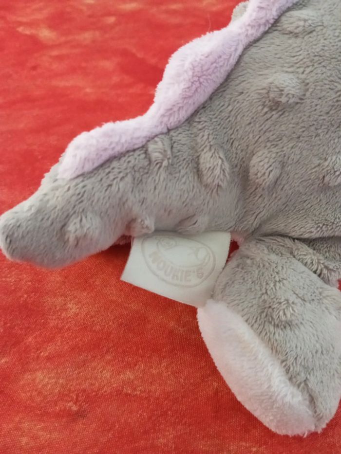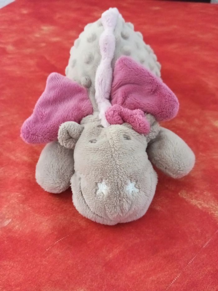 Doudou dragon gris et rose Noukie 's En très bon état, vendu comme sur les différentes photos. Dans mon dressing, il y a d'autres doudous, des Petshop, des Lego Duplo, des Playmobil, des Barbie et beaucoup de peluches, jeux et jouets vintage #nourriture06_doudou