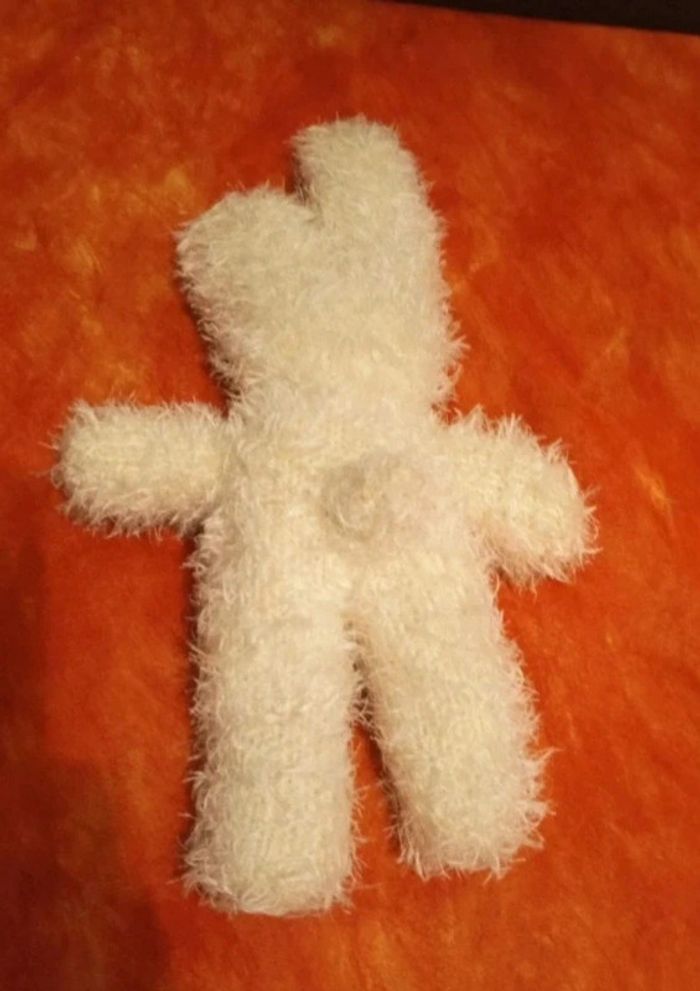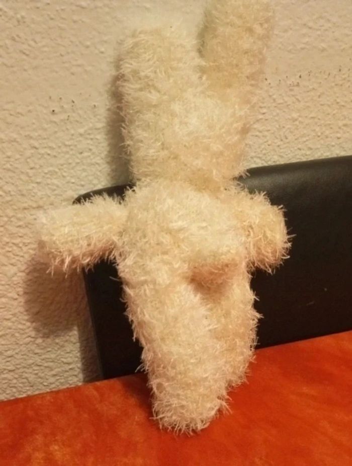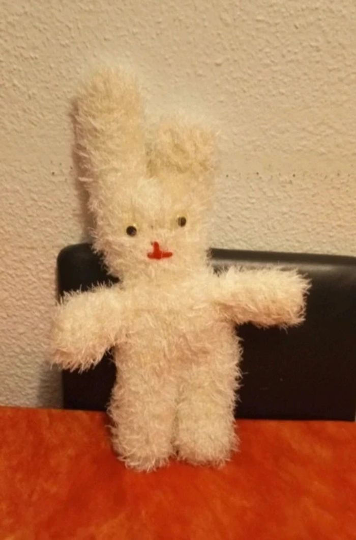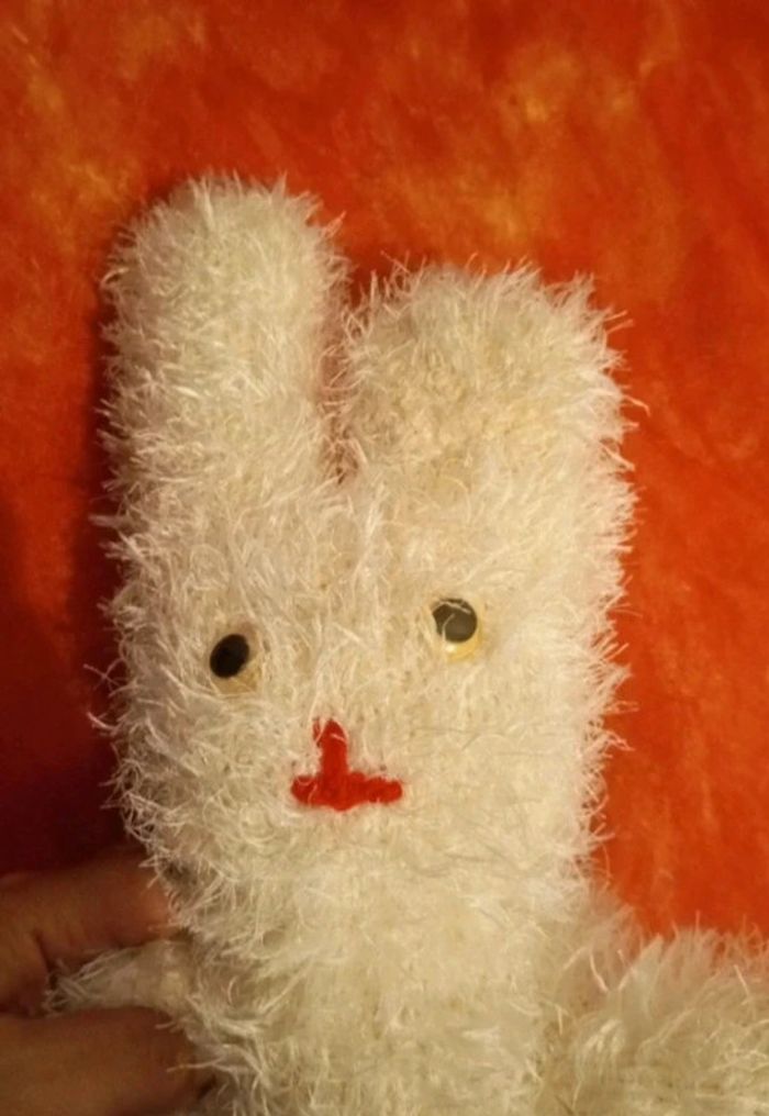 Vends cette peluche lapin blanc, je l'ai acheté d'occasion, je ne connais pas la marque, peut être même du fait main ... En très bon état, vendu comme sur les différentes photos. Dans mon dressing, il y a d'autres peluches, des Petshop, des Lego Duplo, des Playmobil, des Barbie et beaucoup de jeux et jouets vintage