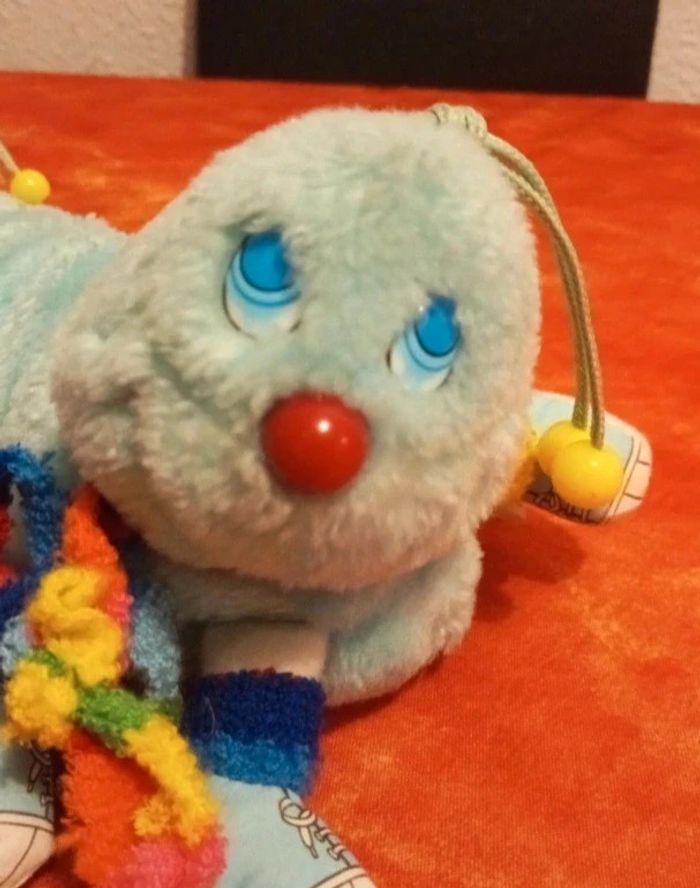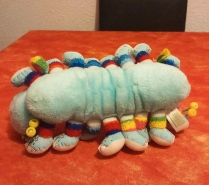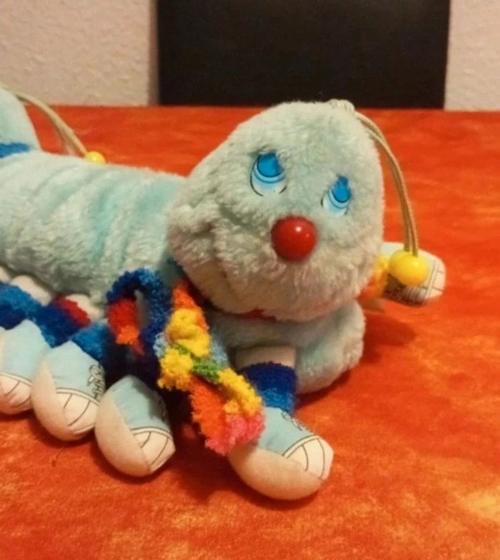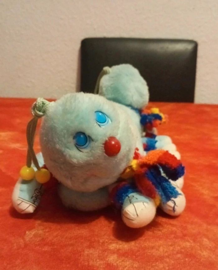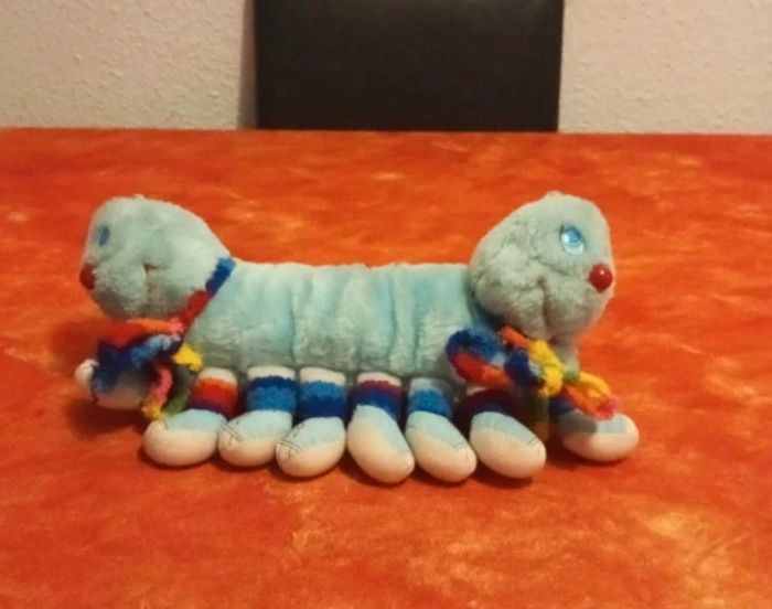 Vends cette peluche chenille mille pattes bleu à 2 têtes, vintage des années 80, sonore comme un pouet, marque Lots a lots a leggggggs En très bon état, vendu comme sur les différentes photos. Dans mon dressing, il y a d'autres peluches, des Petshop, des Lego Duplo, des Playmobil, des Barbie et beaucoup de jeux et jouets vintage #nourriture06_peluche_vintage