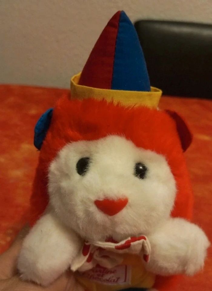 Hérisson clown avec nœud papillon vintage 1994, marque Tartine et chocolat En très bon état, comme neuf, vendu comme sur les différentes photos. Dans mon dressing, il y a d'autres Barbie , des peluches, des Petshop, des Lego Duplo, des Playmobil, des Barbie et beaucoup de jeux et jouets vintage #Nourriture06_peluche_vintage