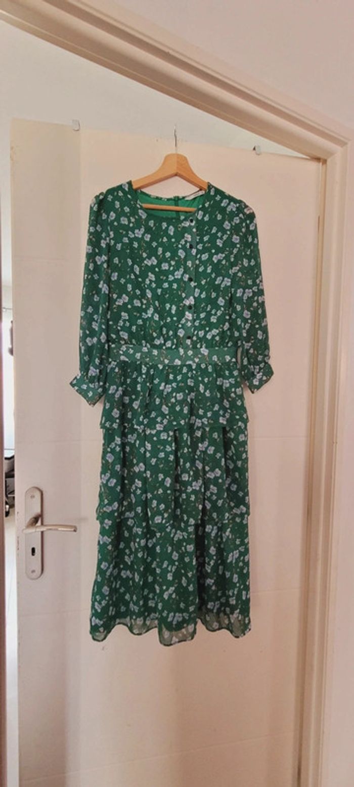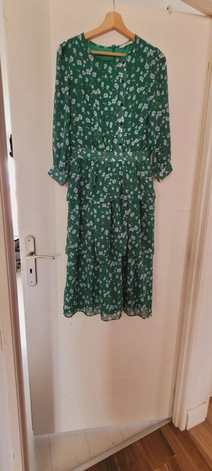 Superbe robe neuve Only taille 38 verte fleurie à volants et voilage Jamais portée ( j'ai grossi 😅) 1