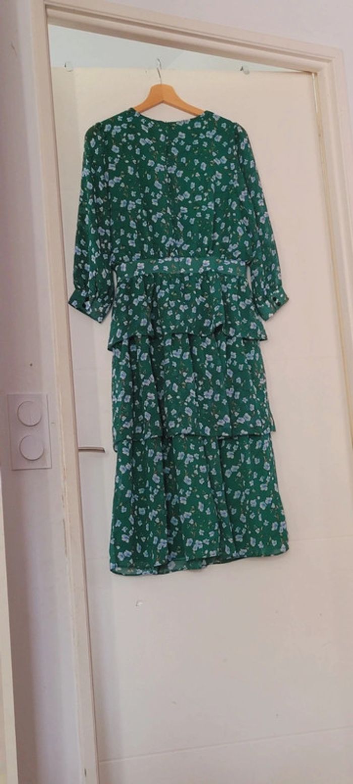 Superbe robe neuve Only taille 38 verte fleurie à volants et voilage - photo numéro 13
