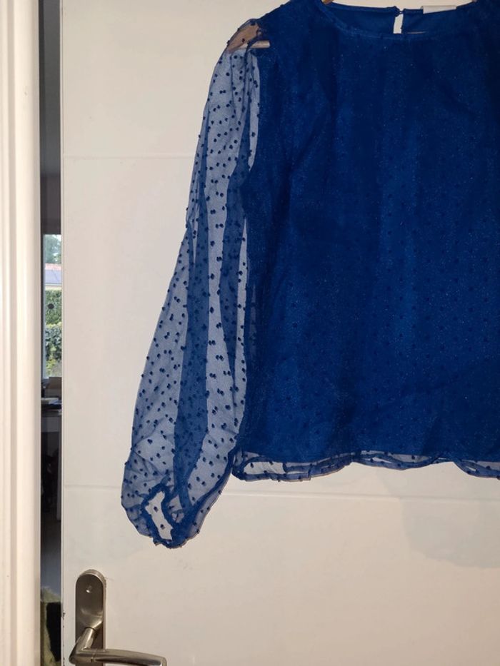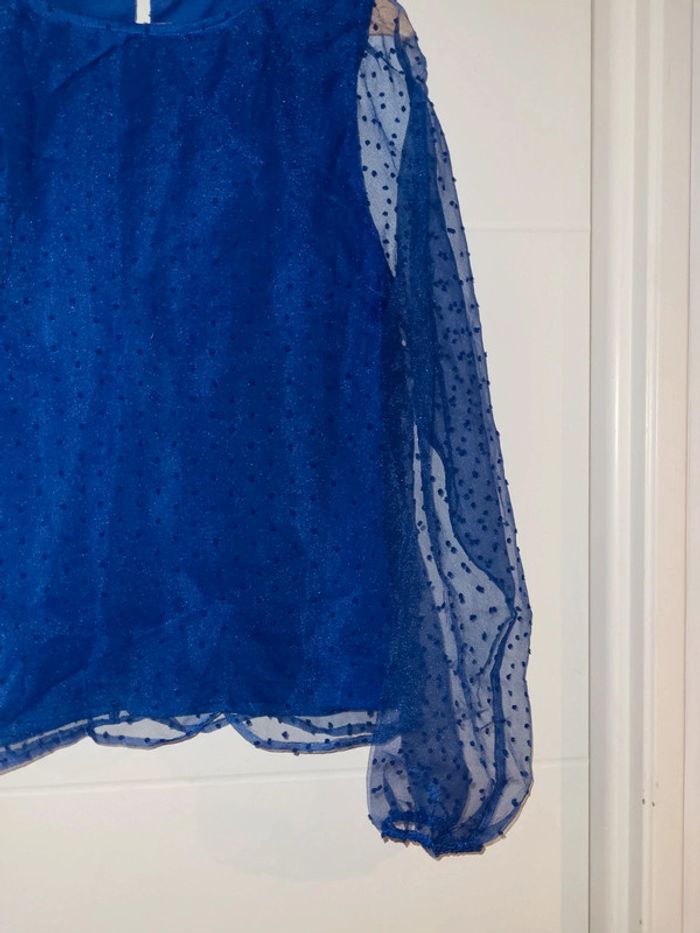 Blouse neuve Vila bleu electrique doublée plumetis neuf avec étiquette - photo numéro 3