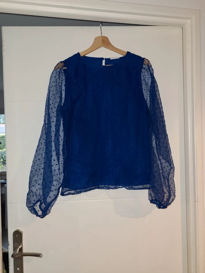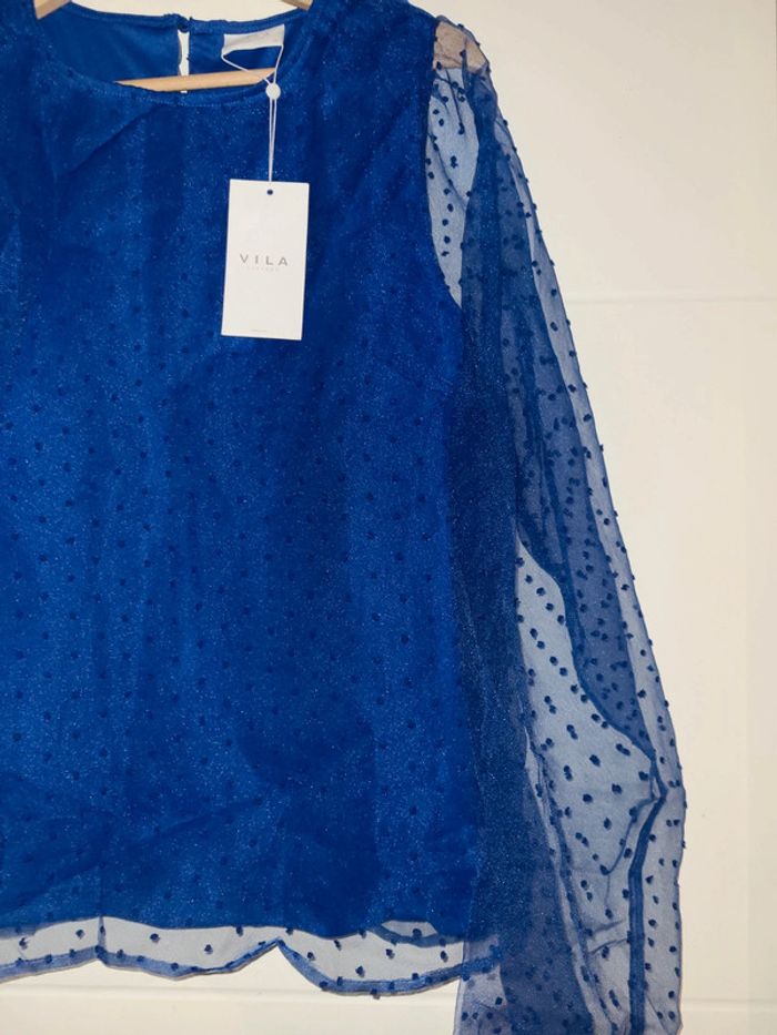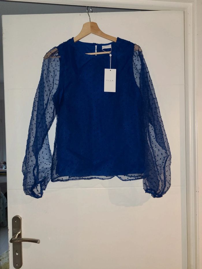 Blouse neuve Vila bleu electrique doublée plumetis neuf avec étiquette - photo numéro 1