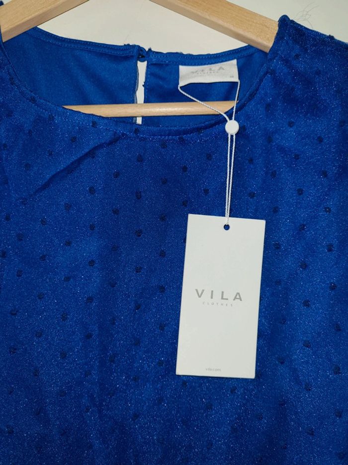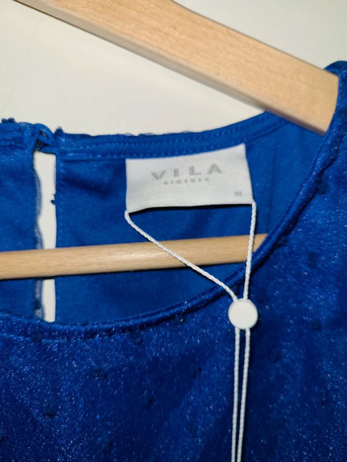 Blouse neuve Vila bleu electrique doublée plumetis neuf avec étiquette - photo numéro 2