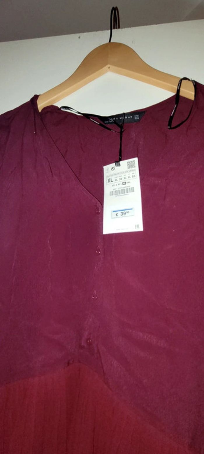 Robe Zara bordeaux plissée neuve avec étiquette idéale fêtes taille 42 - photo numéro 2