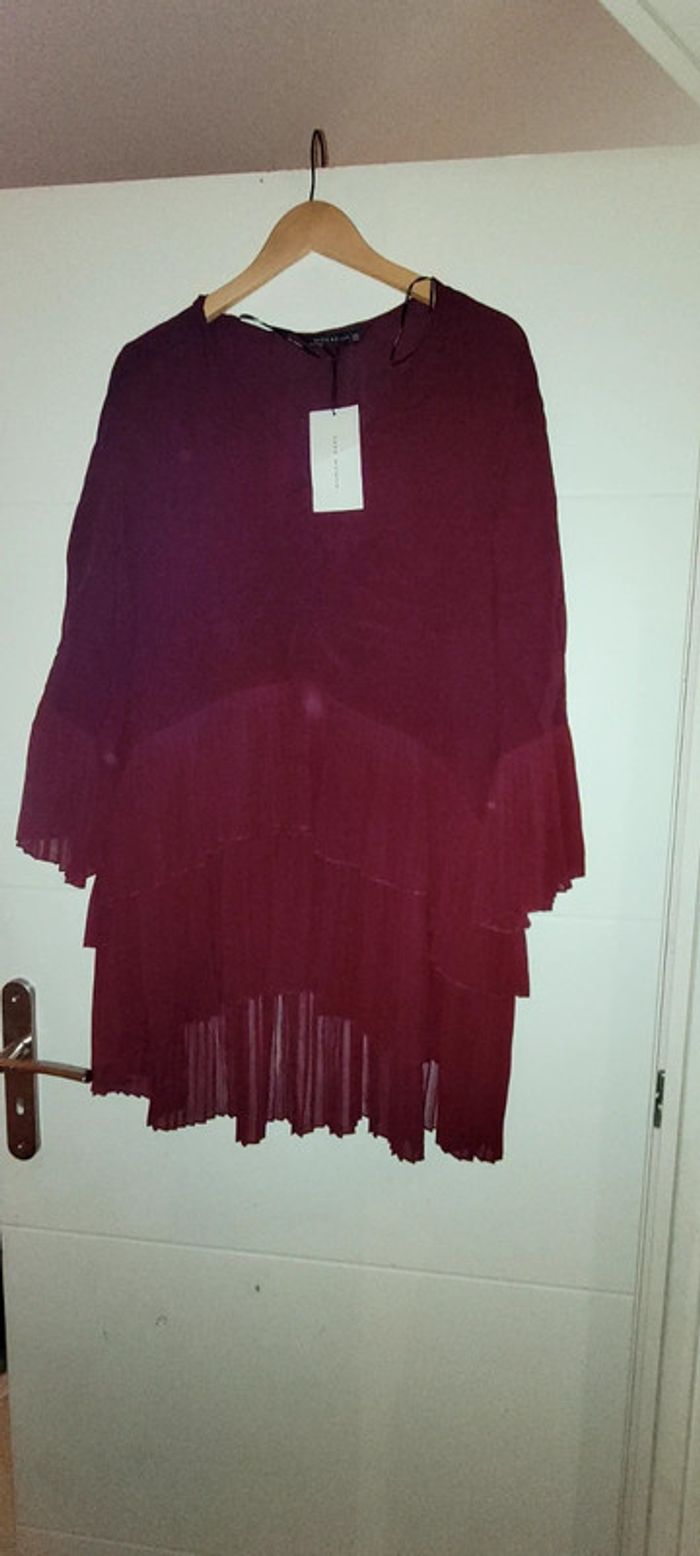Robe Zara bordeaux plissée neuve avec étiquette idéale fêtes taille 42 - photo numéro 1