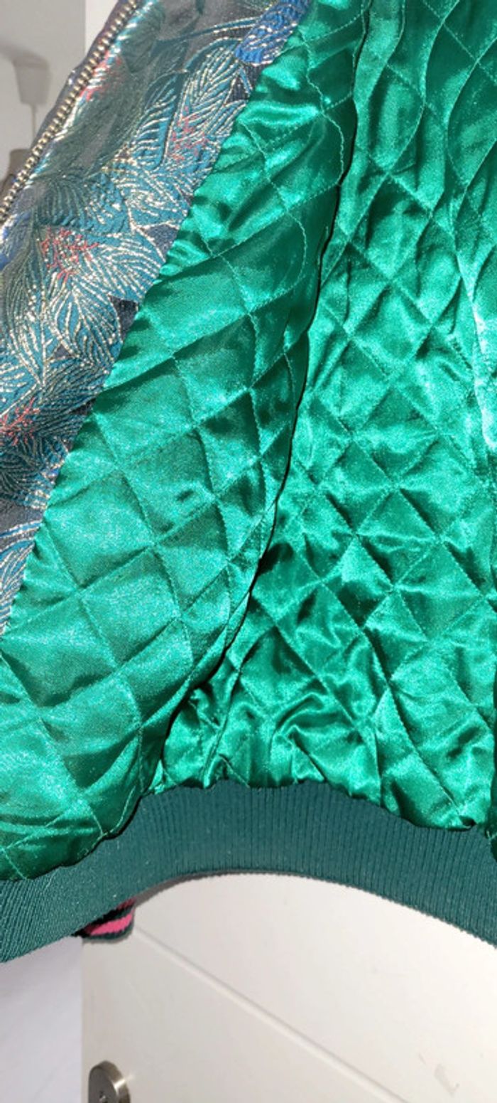 Superbe bombers épais motifs orientaux et tissage doré Doublée en satin vert Édition limitée Pimkie taille 36 Parfait état Vente à regret...