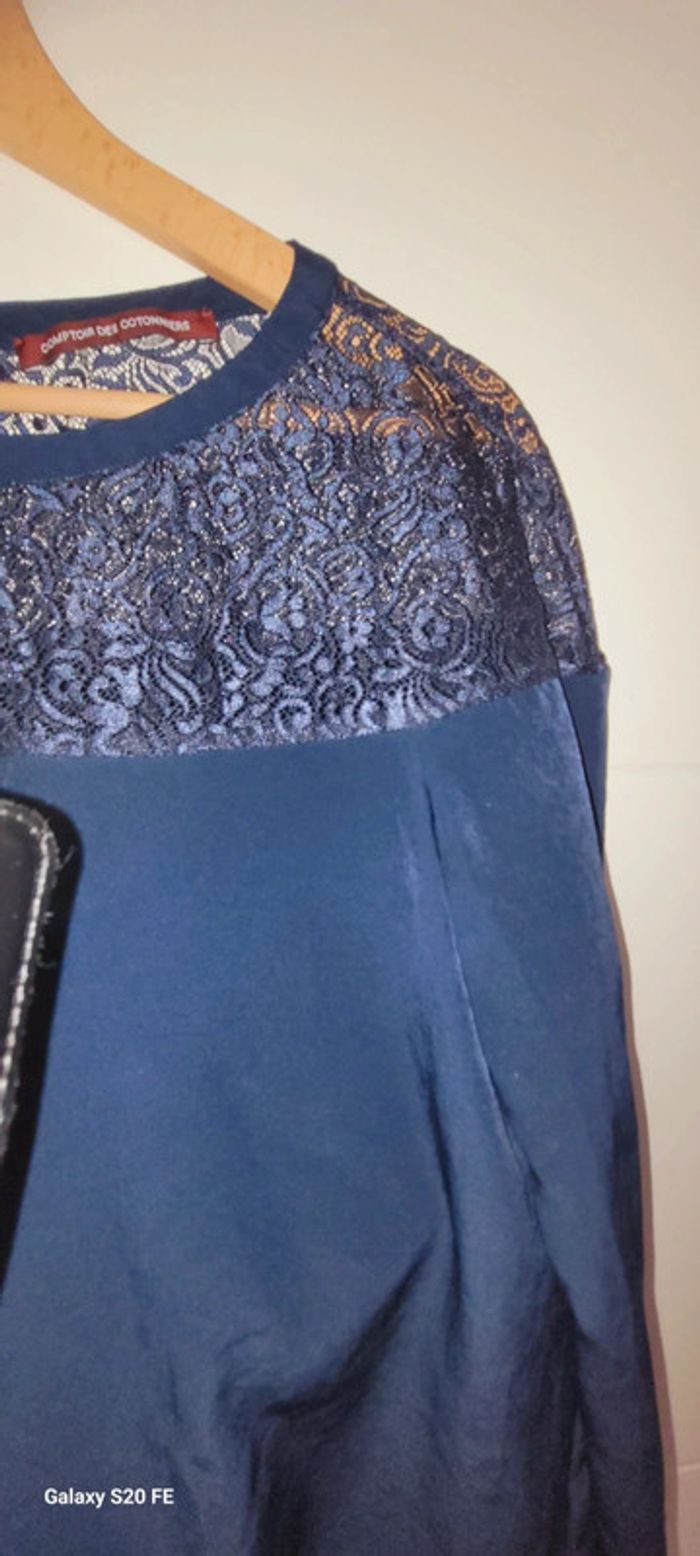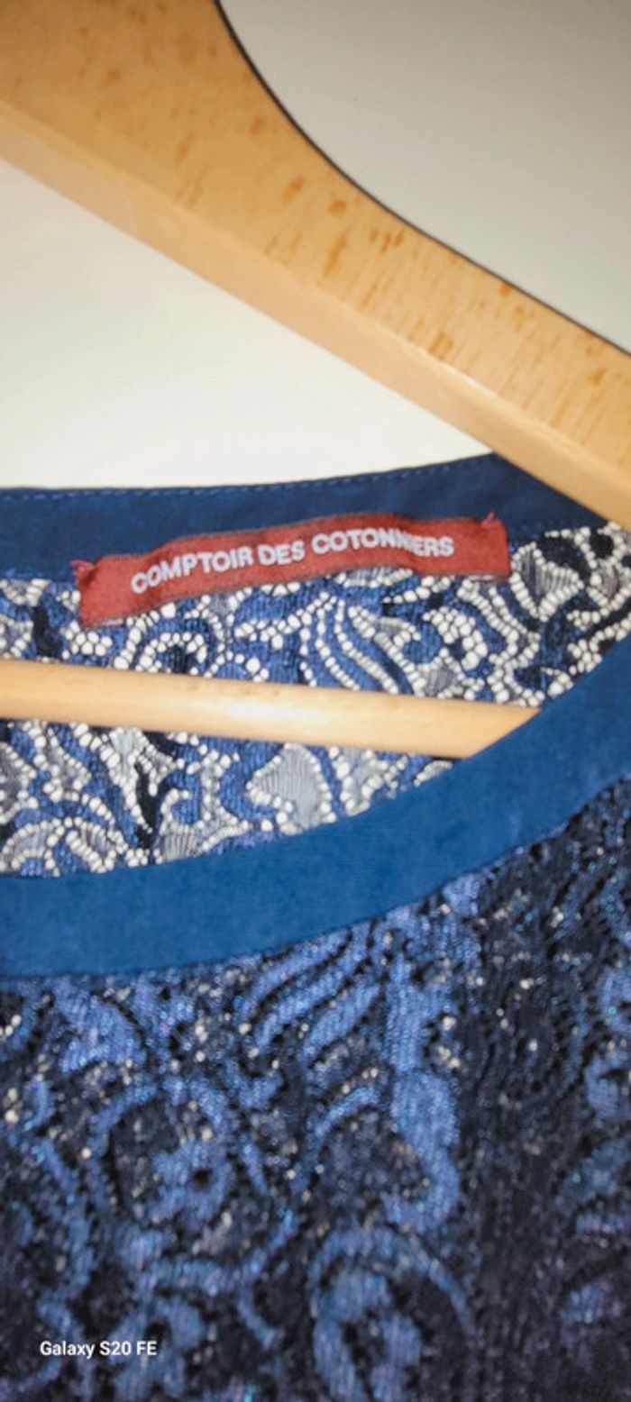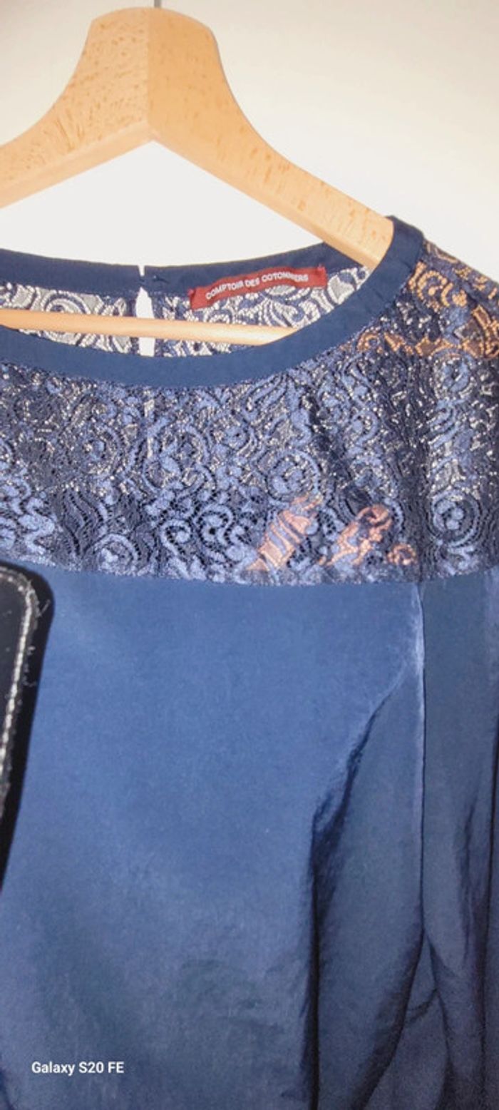 Blouse Comptoir des Cotonniers dentelles, coton et soie bleu nuit taille 42 - photo numéro 1