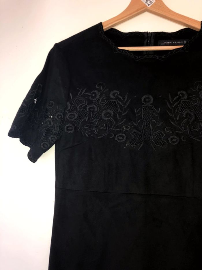 Robe ZARA tissu épais daim noir avec broderies taille M - photo numéro 6