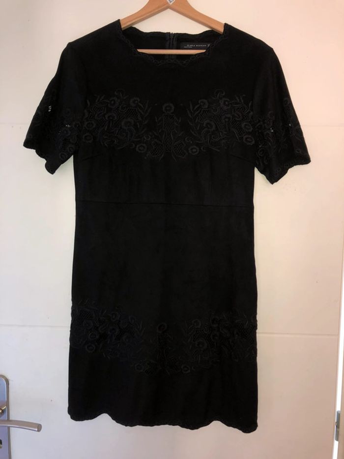 Robe ZARA tissu épais daim noir avec broderies taille M - photo numéro 1