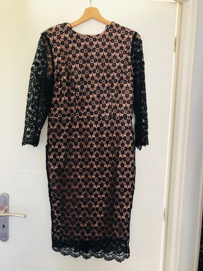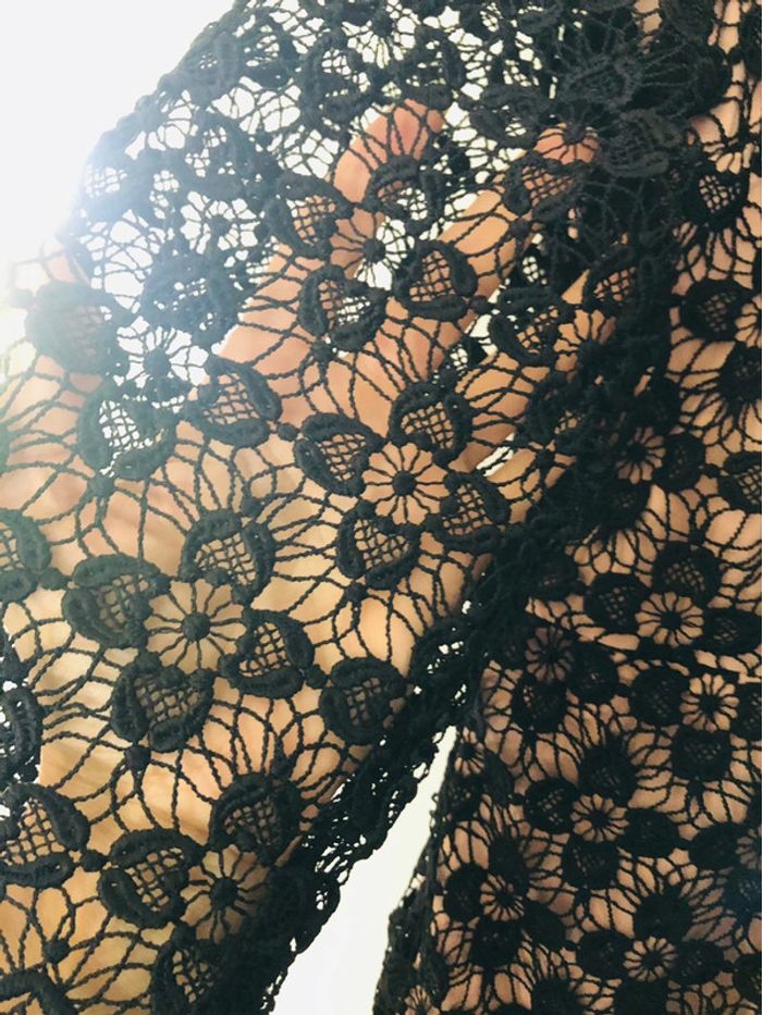 Superbe robe neuve noire brodée et ajourée GOKX fond crème taille 40 - photo numéro 5