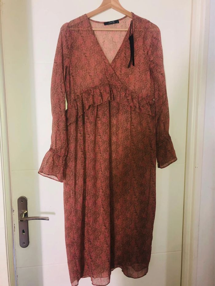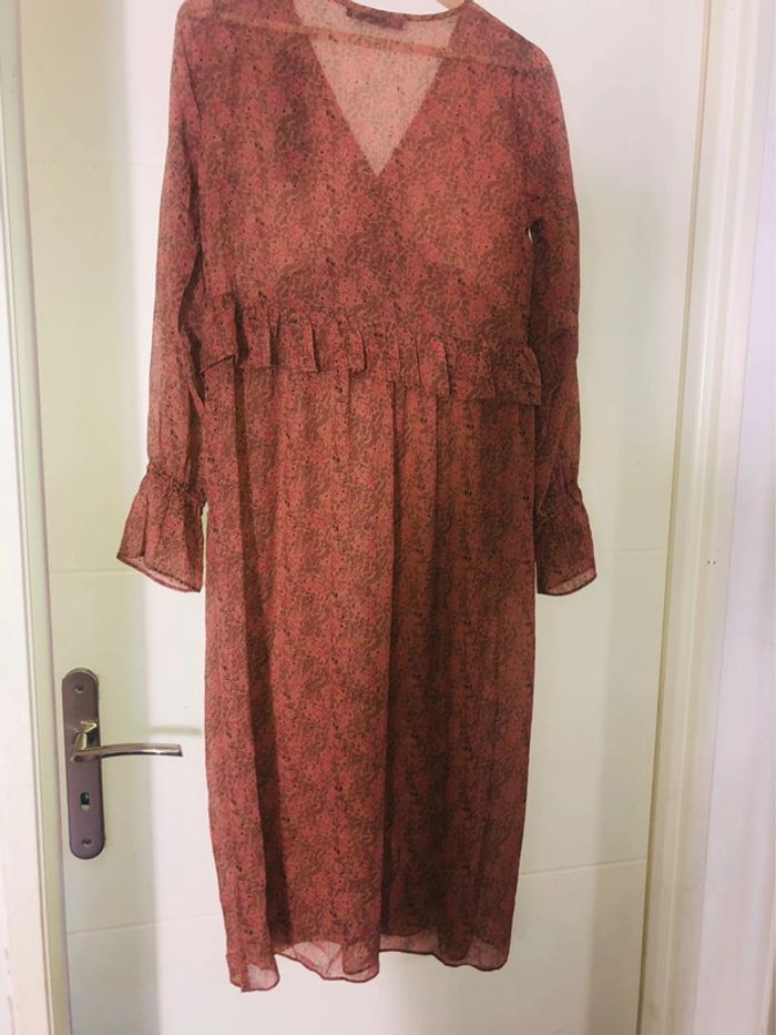 Superbe robe en voile School Rag taille S neuve avec étiquette Décoletté V Volants sous-poitrine Poignet élastiqué Jeu de transparence Longueur depuis épaule pour une taille S: 91 cm Il manque le fond de robe ( mais vous pouvez en mettre un autre).