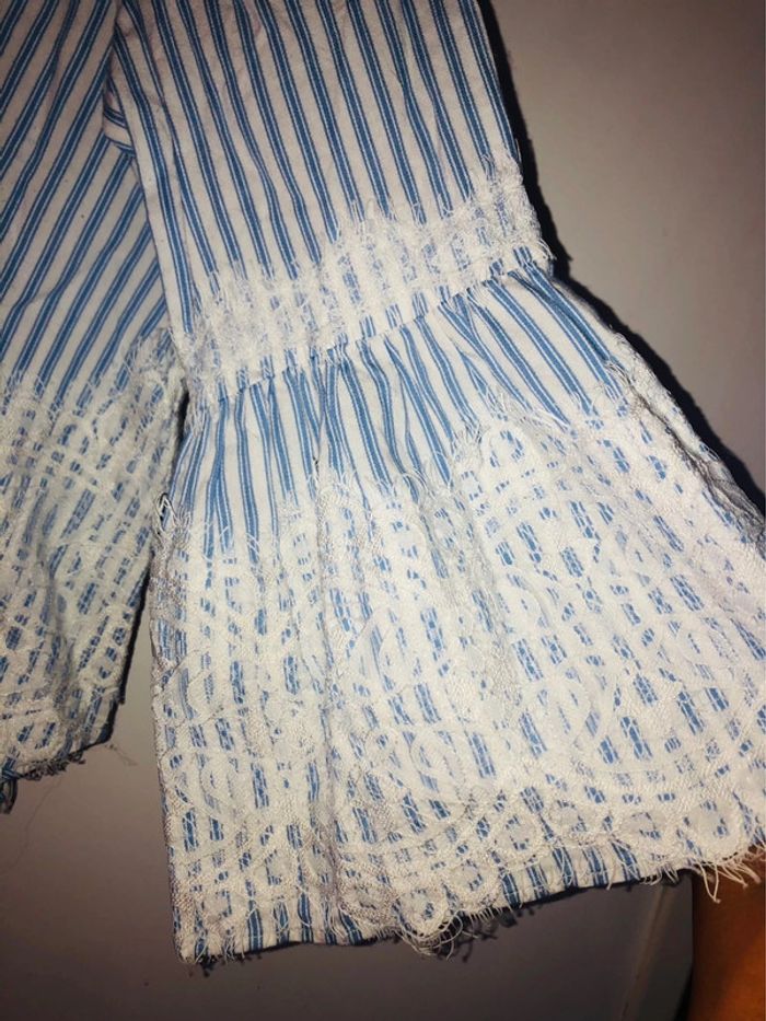Superbe blouse Zara rayée manches larges et dentelles portée une fois parfait état - photo numéro 4