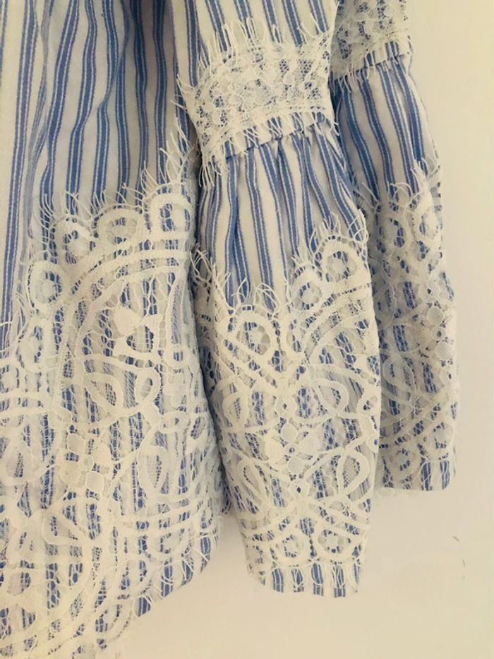 Superbe blouse Zara rayée manches larges et dentelles portée une fois parfait état - photo numéro 2