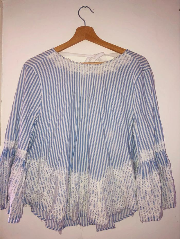Superbe blouse Zara rayée manches larges et dentelles portée une fois parfait état
