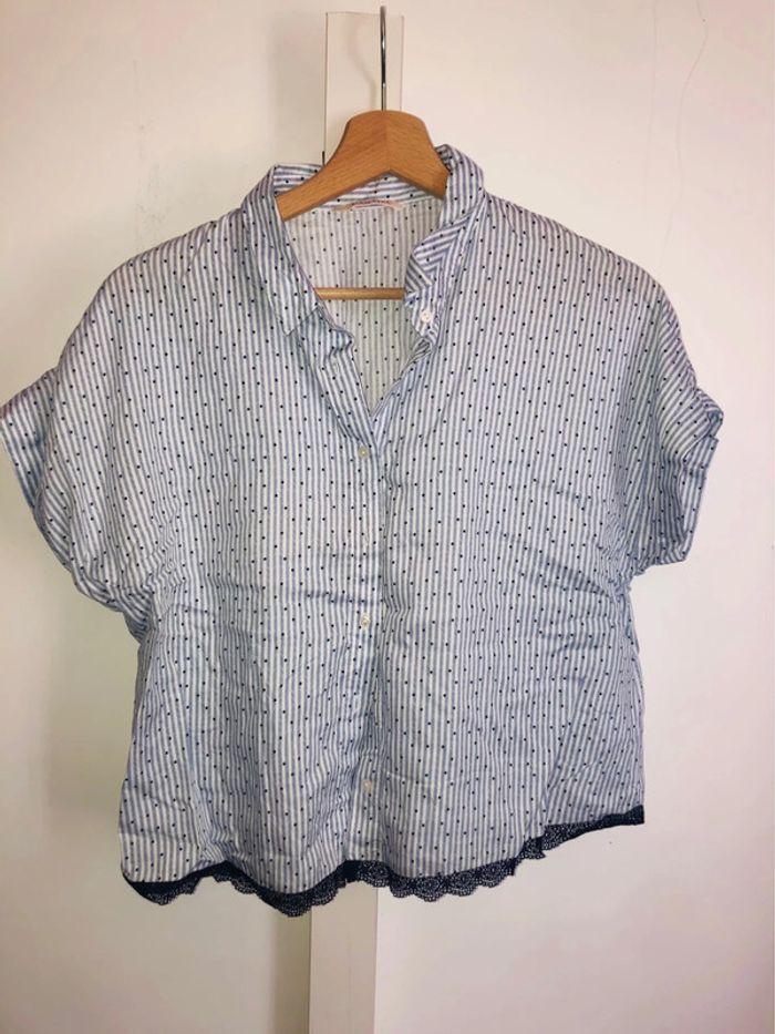 Chemise légère Camaïeu à rayures et pois avec petite dentelle taille 40