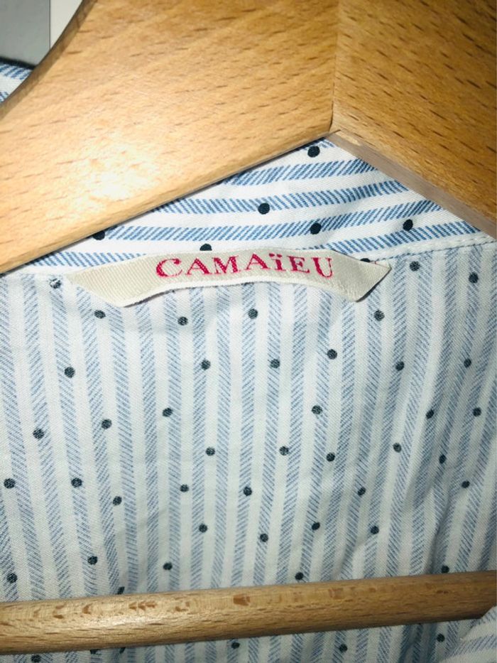 Chemise légère Camaïeu à rayures et pois avec petite dentelle taille 40 - photo numéro 2