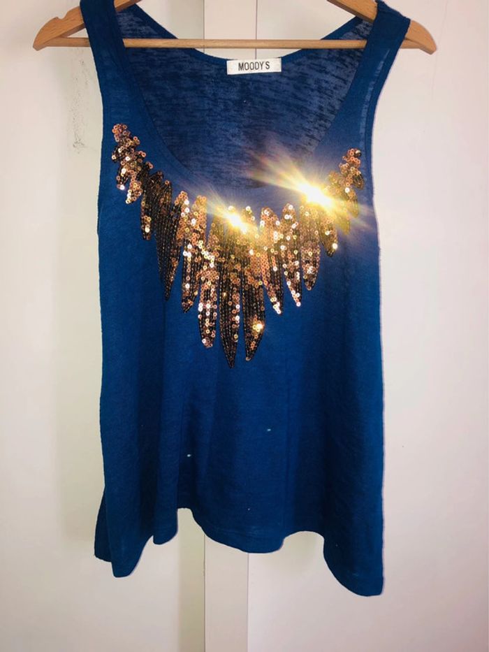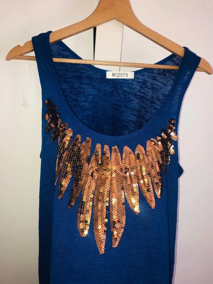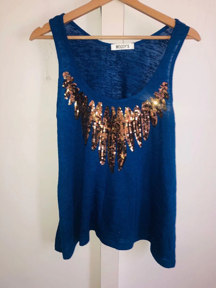 Super joli haut bleu électrique et sequins dorés très bon état taille 38/40