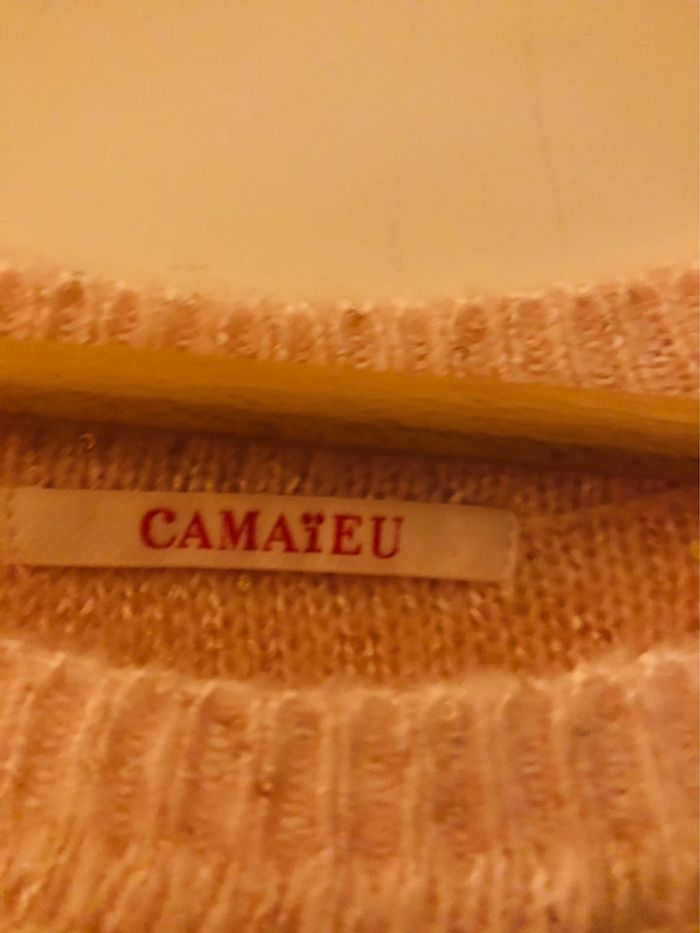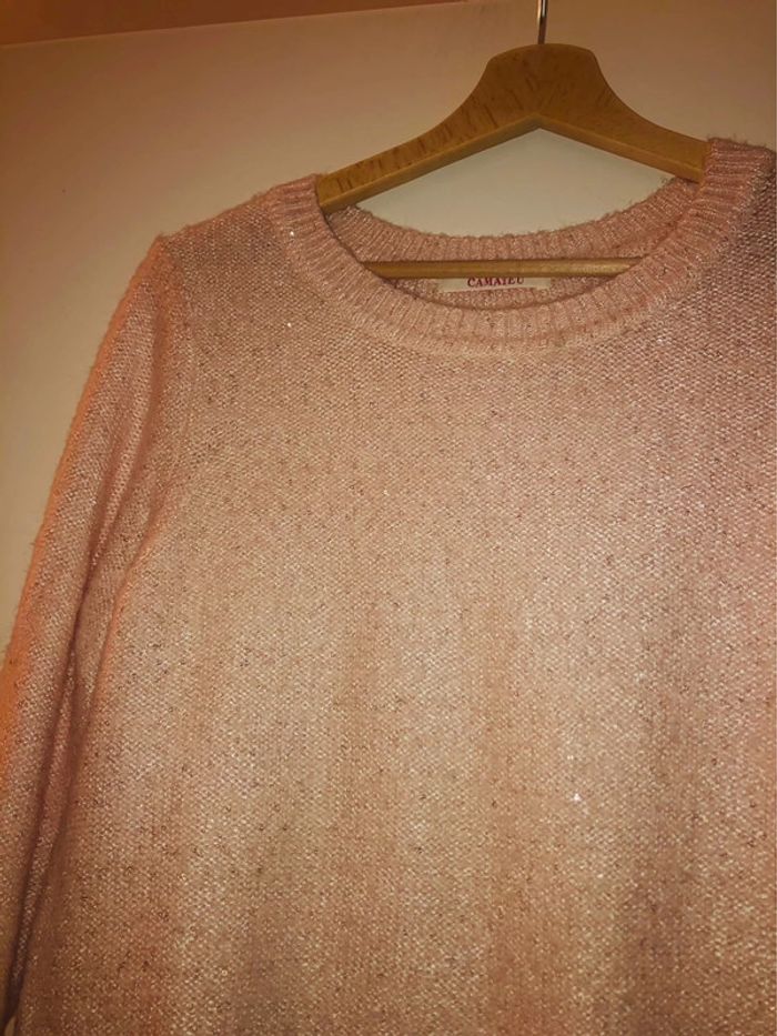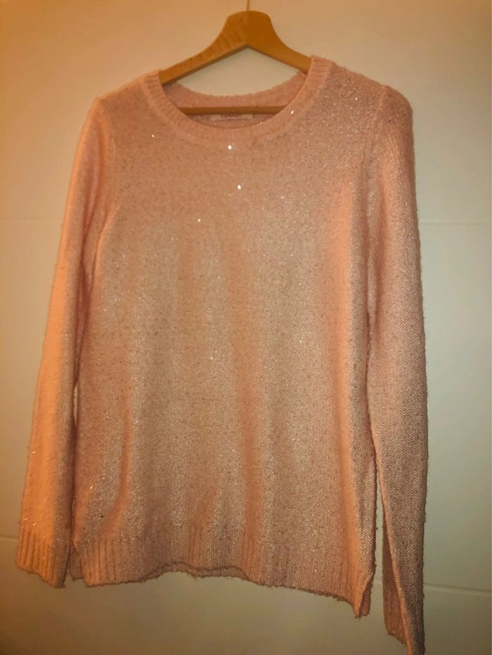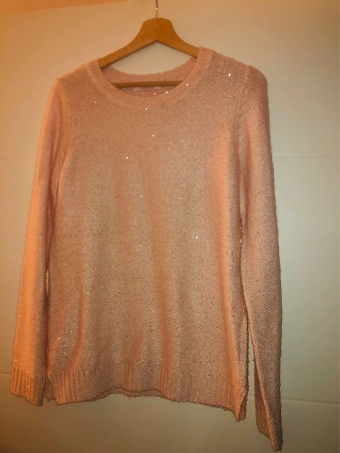 Joli pull Camaïeu rose pâle incrusté sequins taille 2 - photo numéro 1