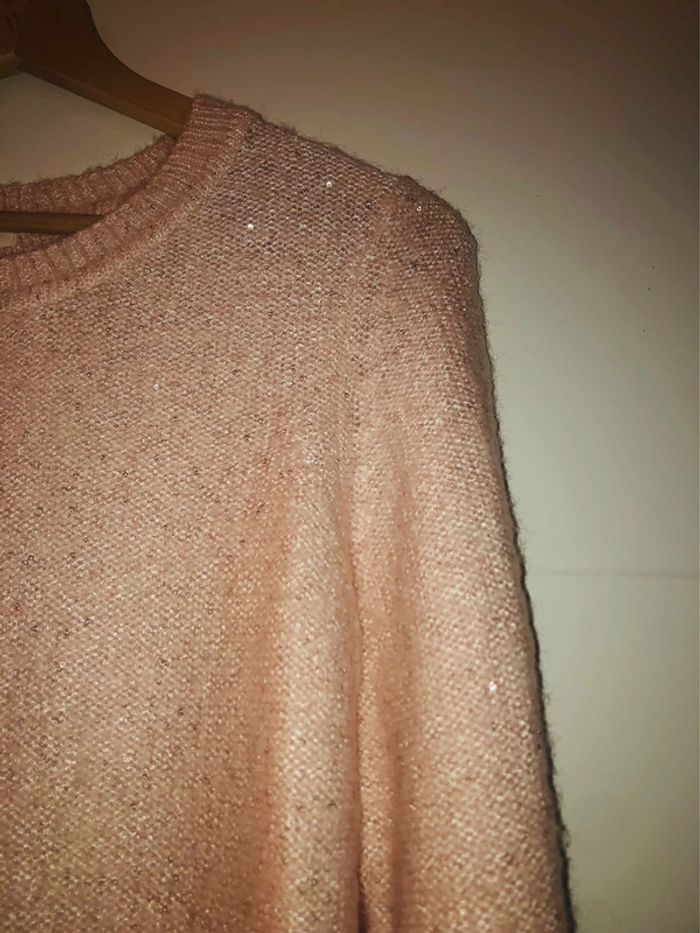 Joli pull Camaïeu rose pâle incrusté sequins taille 2 - photo numéro 7
