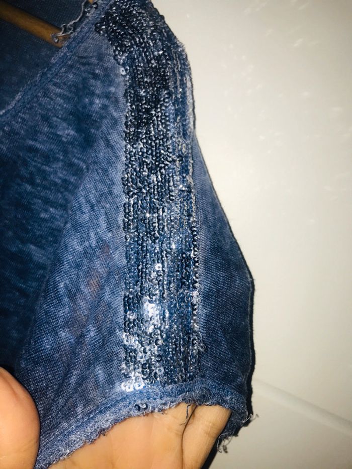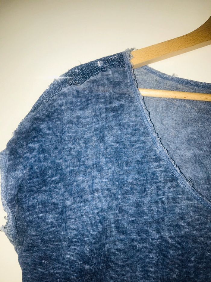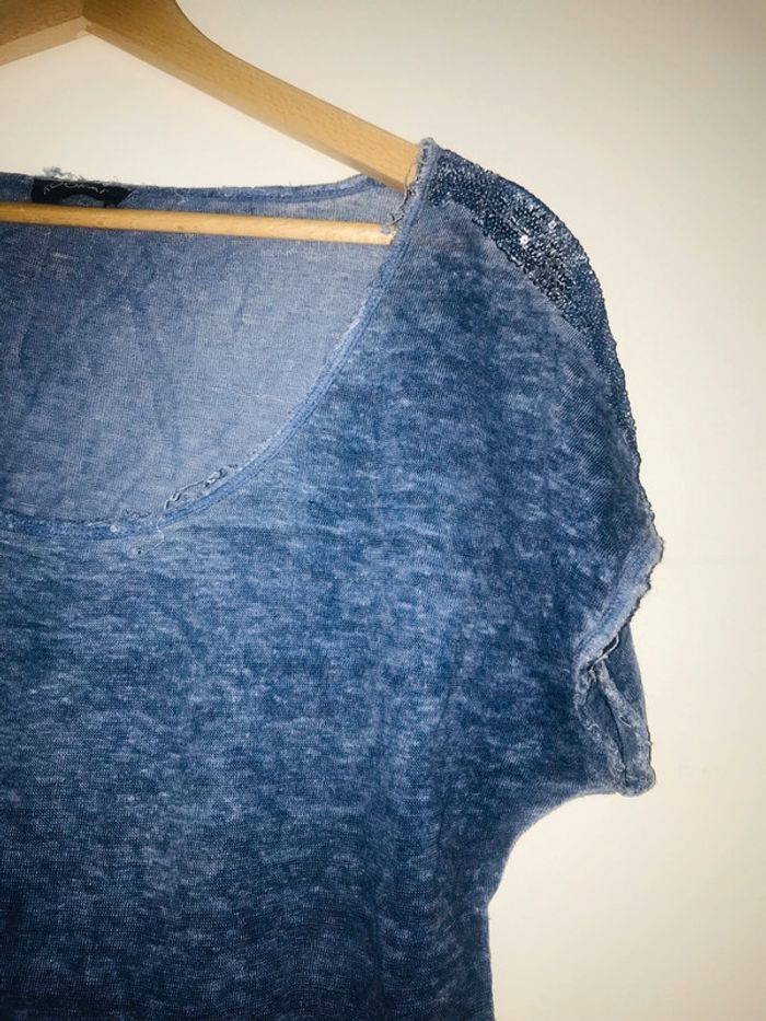 Tee shirt en lin KOOKAI couleur jean avec strass  sur les épaules parfait état - photo numéro 5