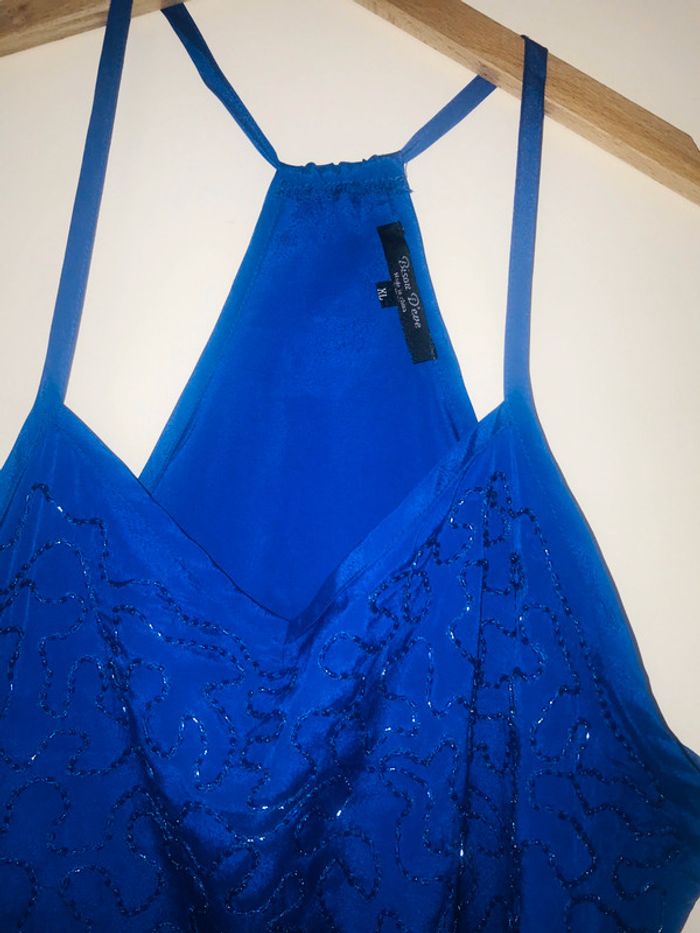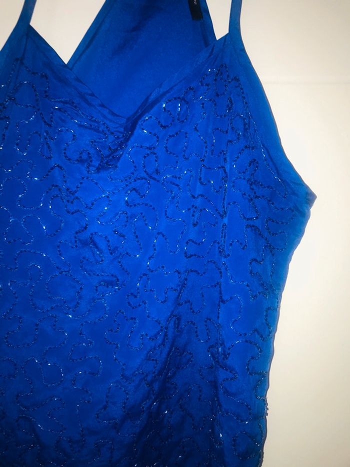 Superbe top débardeur avec perles bleu roi parfait état - photo numéro 3