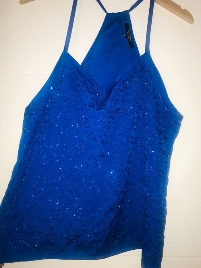 Superbe top débardeur avec perles bleu roi parfait état - photo numéro 1