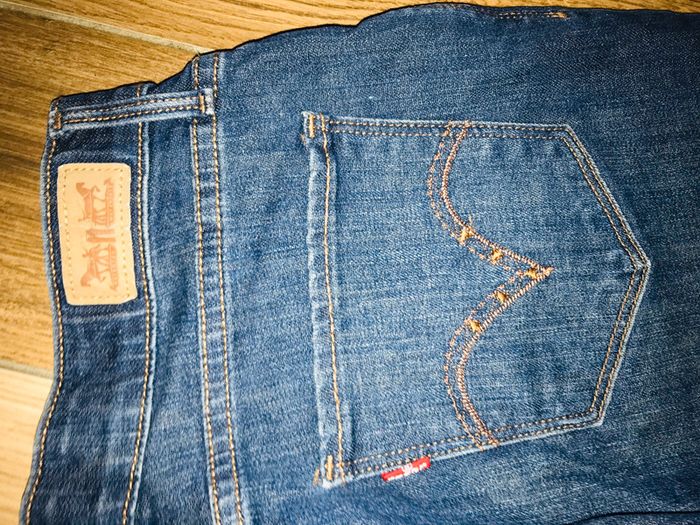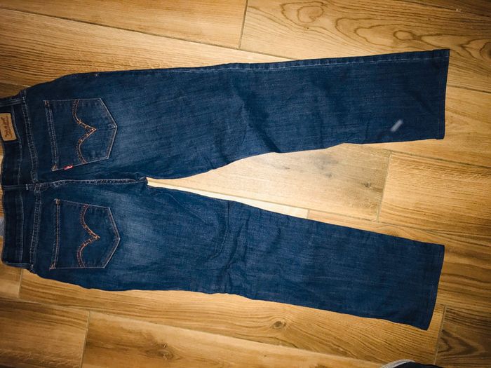 très joli jean Lévis : épouse la forme des hanches je l’ai lentement raccourci sur le bas pour éviter de l’abîmer. taille 27/32 soit un 36/38