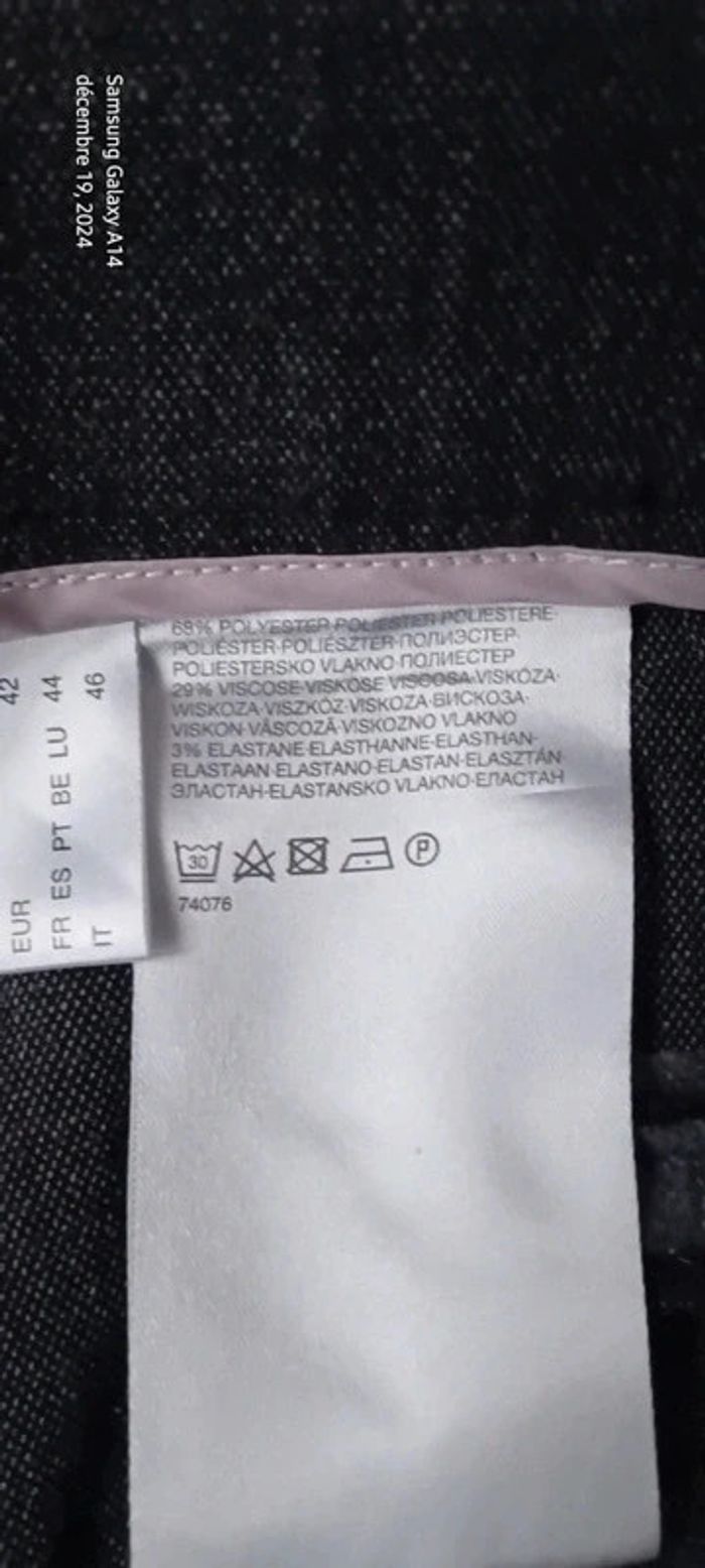 Pantalon coupe droite en polyester viscose et elastanne tissu plutôt epais taille élastique sur les côtés fausses poches derrière passants pour ceinture jambes plutôt larges longueur 98 cm largeur cuisses 34 cm largeur bas de jambes 22 cm juste porté une ou deux fois en très bon état #midole #midolefemme #midolefemme44 #pantalonfemme44 #femme44 #pantaloncanda44 #canda #pantalontailleur #pantalongris