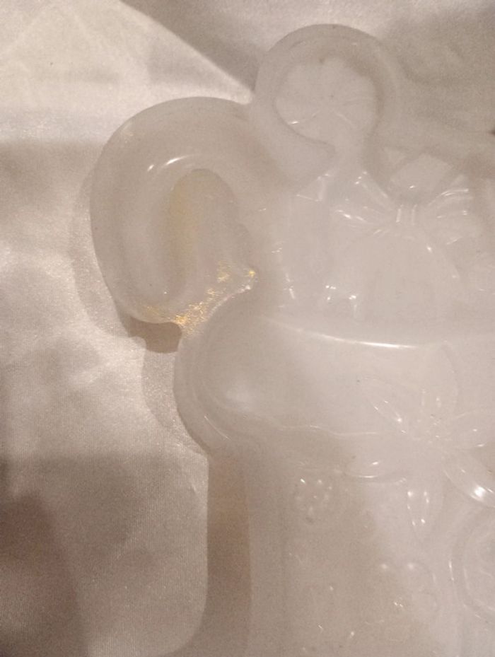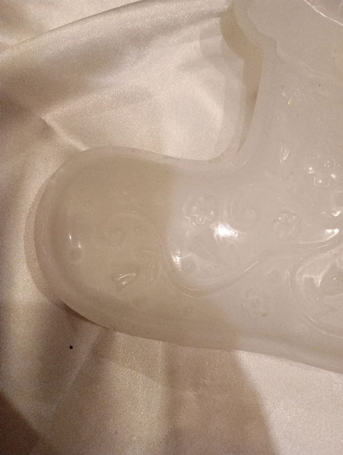 Utilisé une seule fois. Il reste de la poudre de mica sur les côtés extérieur du moule mais ça ne gênera en rien votre création