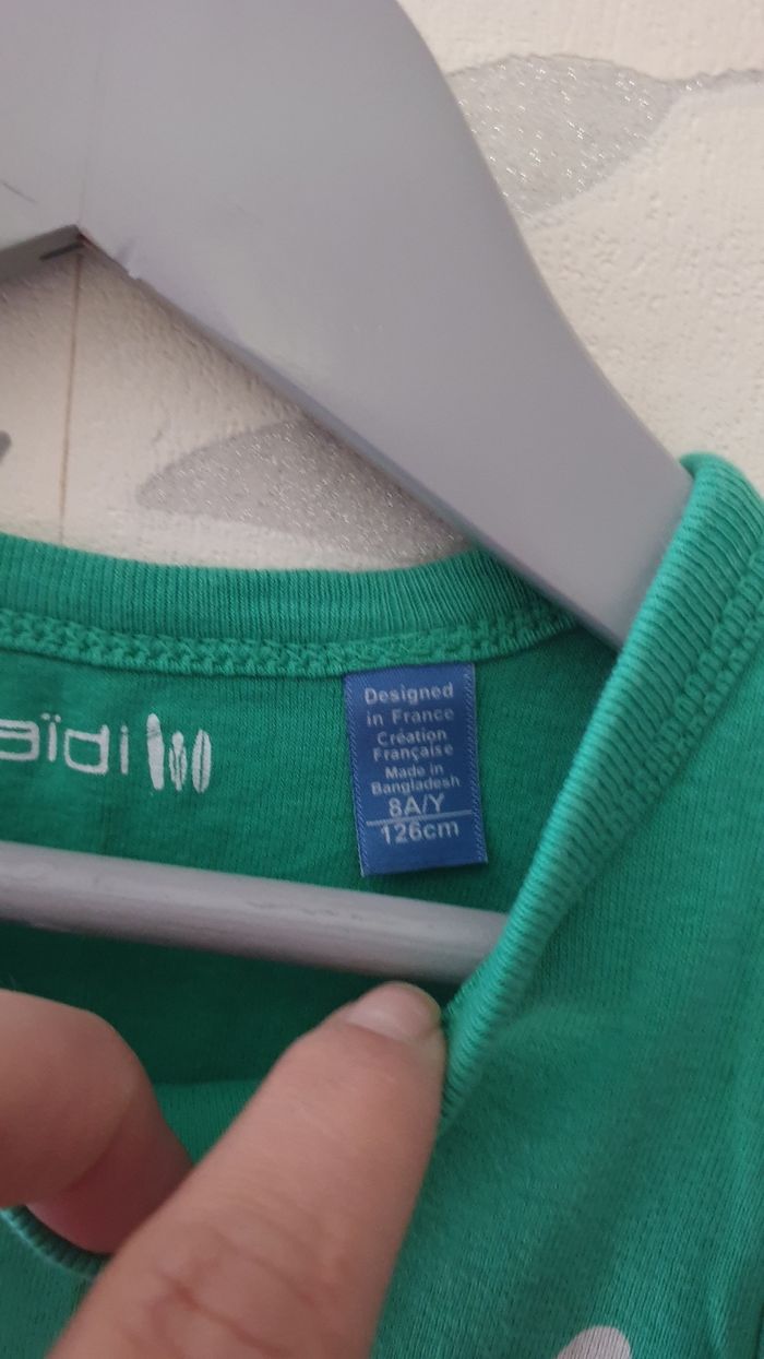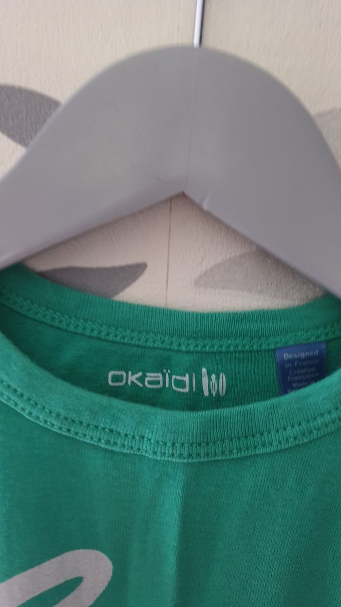 Tee-shirt manche courte marque okaidi taille 8ans vert et blanc très bonne état
