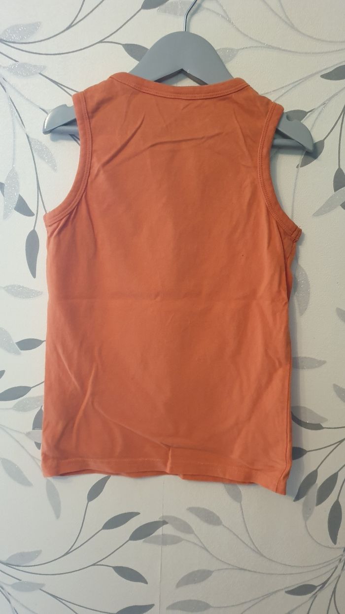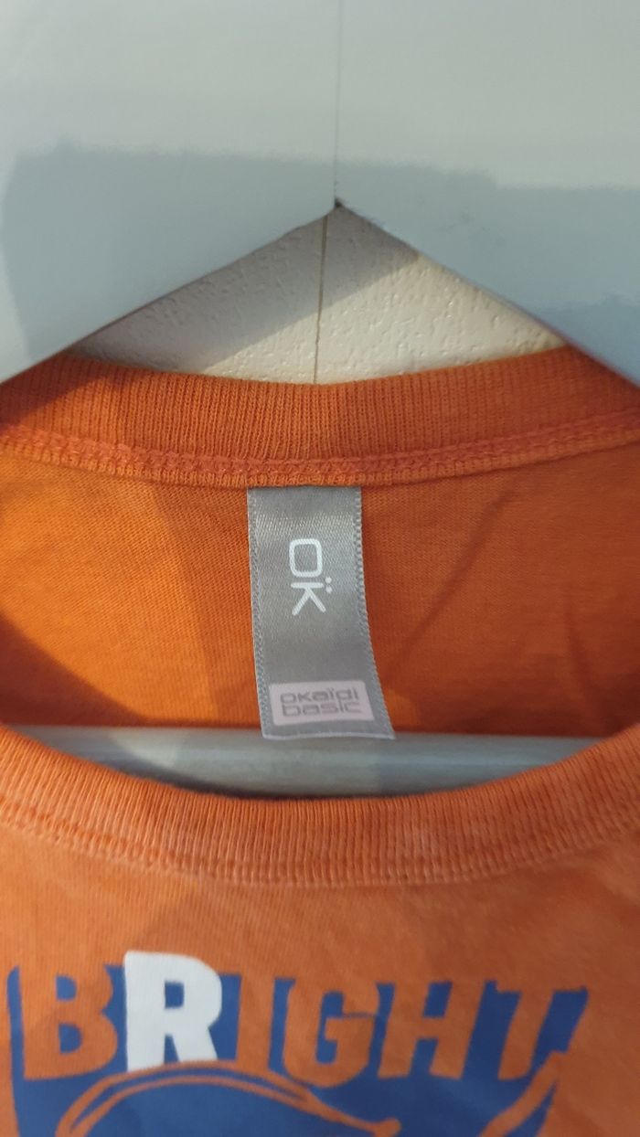 Tee-shirt manche courte orange et blanc taille 8ans marque okaidi très bonne état
