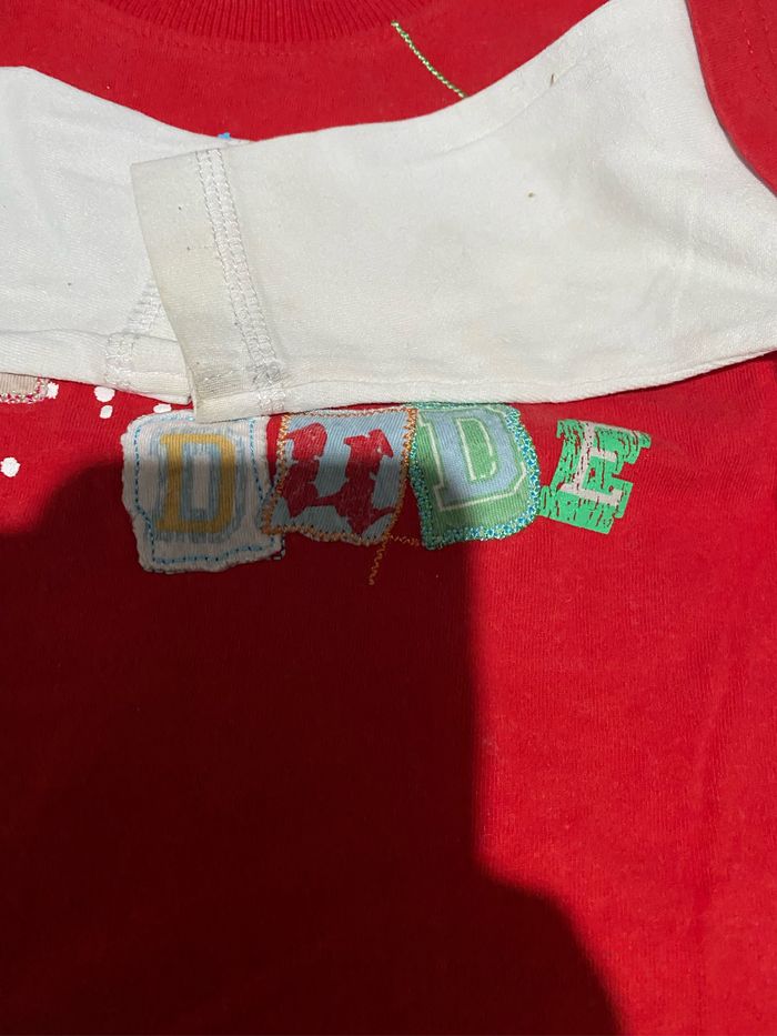 Très bon état sauf haut rouge taché à la manche et pantalon