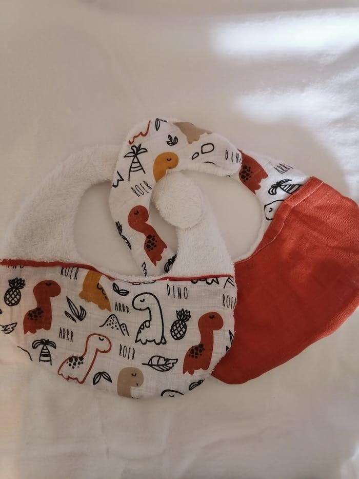 Lot de deux bavoir. Dessus en bavette coton et dois sous en éponge. Neuf, fait pars mes soins