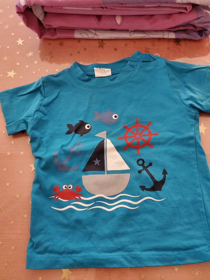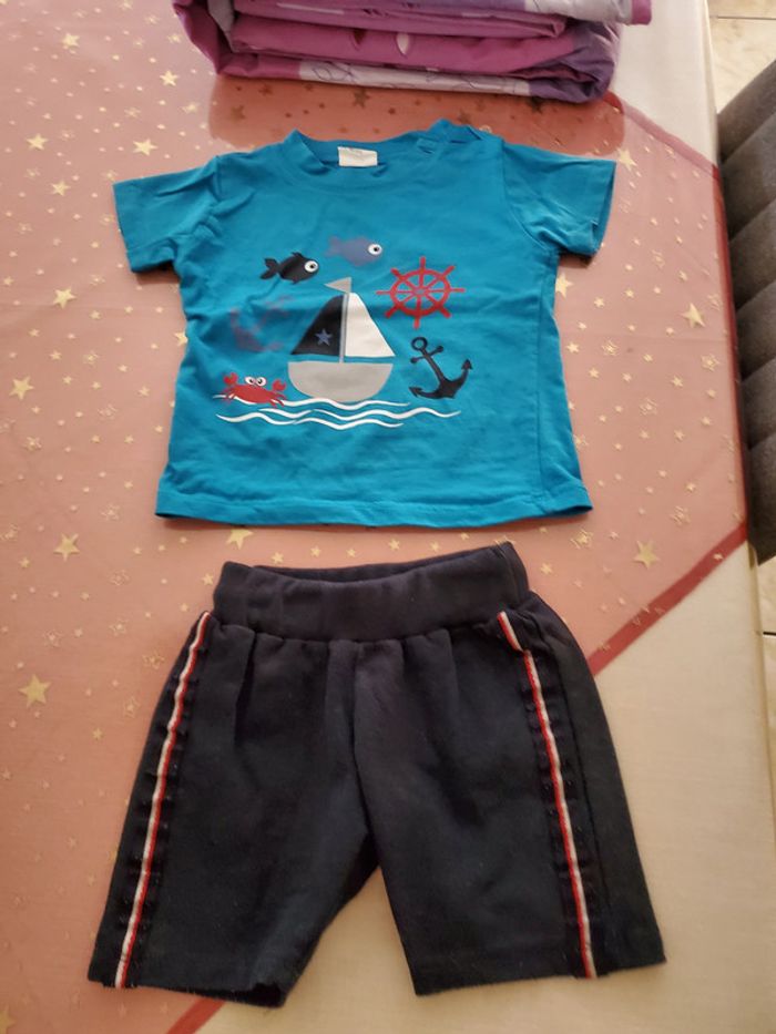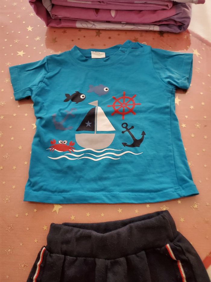 Ensemble bebe garçon 12 mois Avec 2 Tee-shirts et 1 short En bon état Pas de trou, usure normale #sabrina668312mois