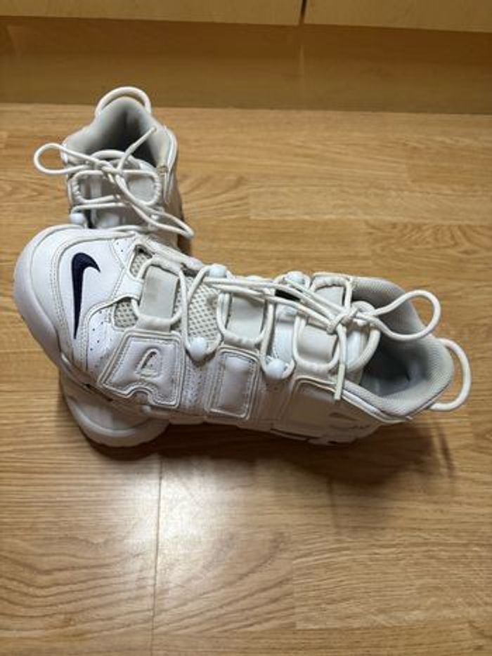 Nike air more uptempo blanche avec logo bleu - photo numéro 1