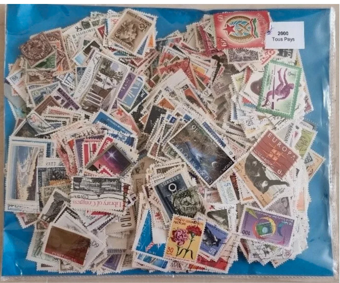LOT 2000 timbres tous pays. TOUS différents, toutes époques. Neufs et oblitérés.