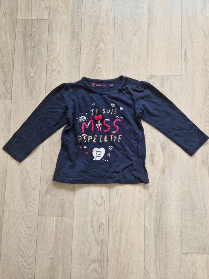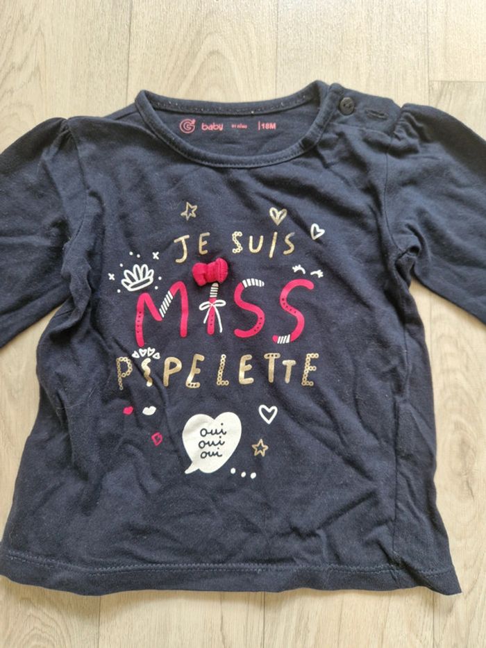 Joli petit t-shirt de la marque Gémo avec écriture "je suis miss pipelette" Très bon état Taille 18 mois #locita8518moisfille